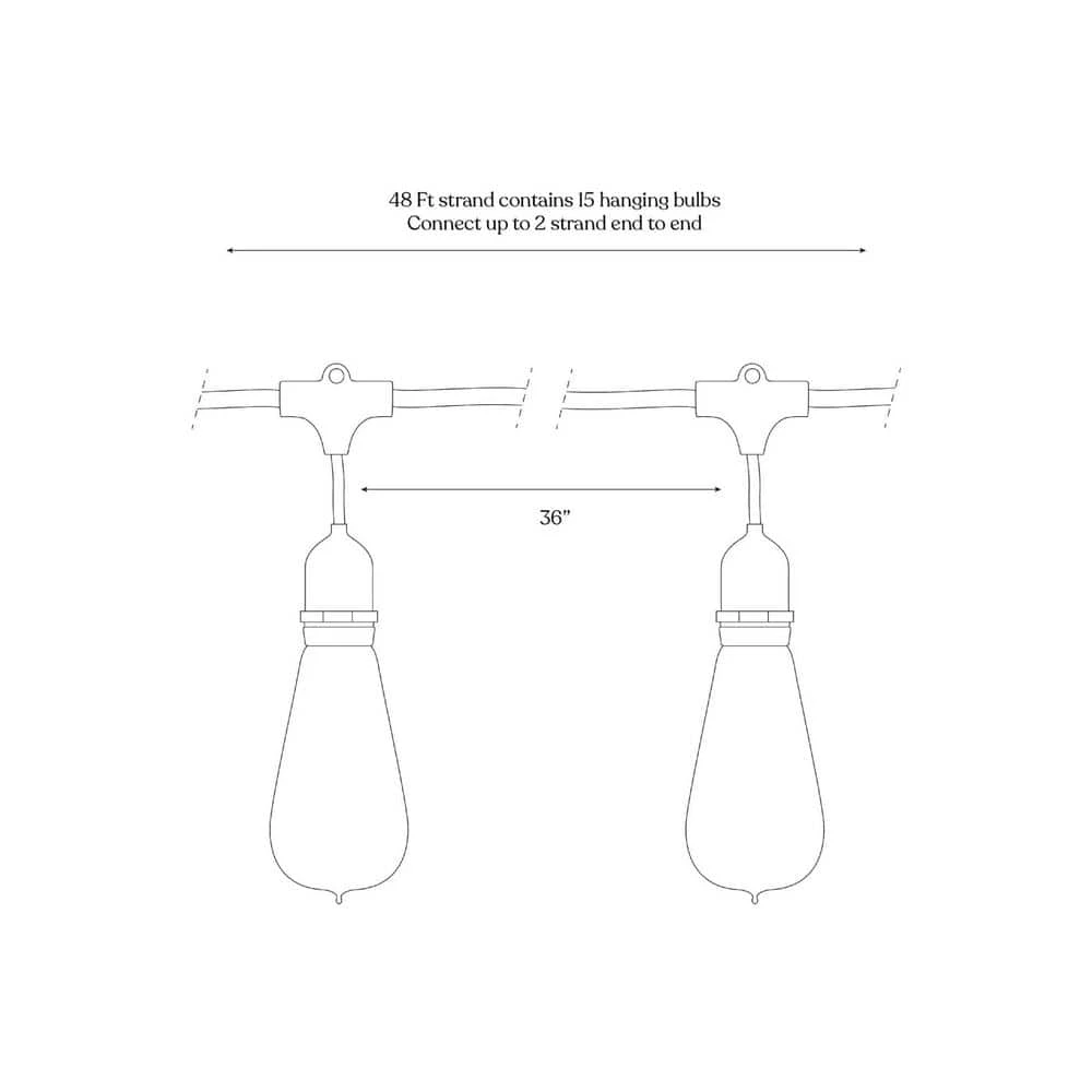 - Each 48-foot strand contains 15 hanging bulbs spaced 3-feet apart with the capacity to connect up to 2 strands.