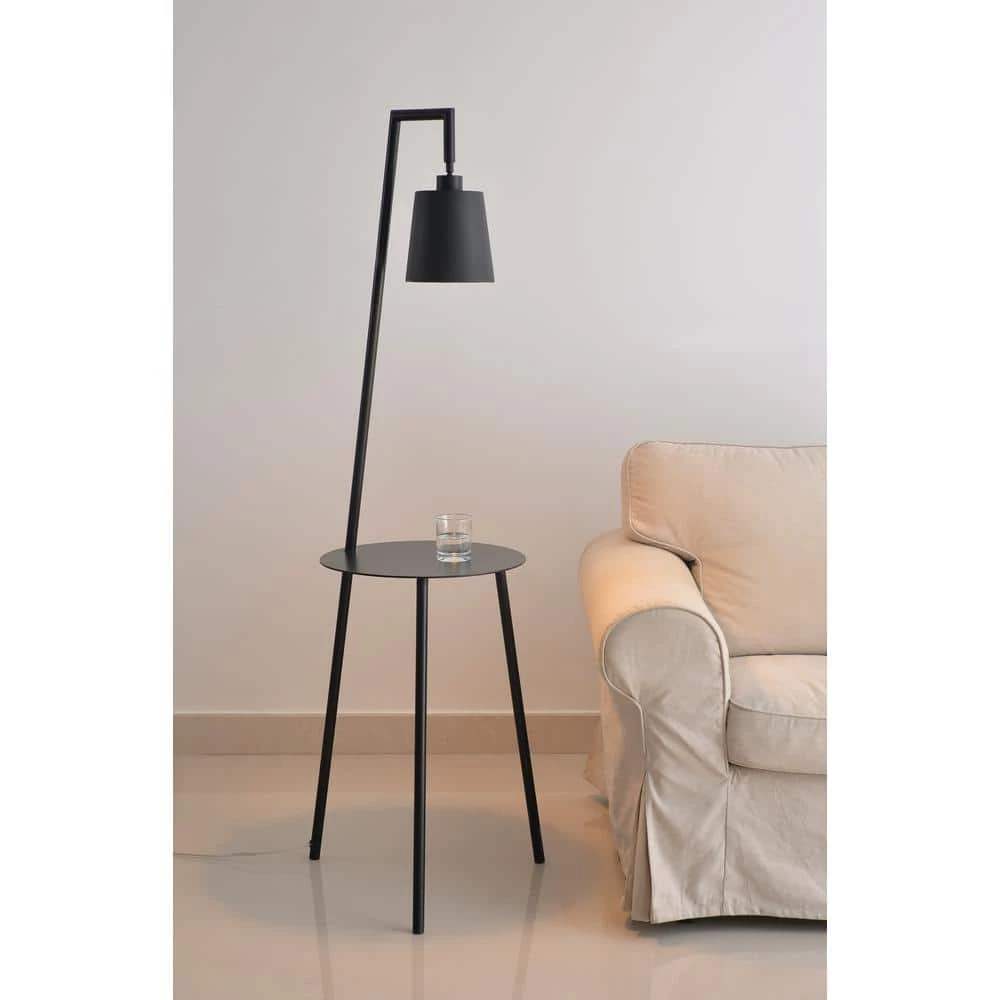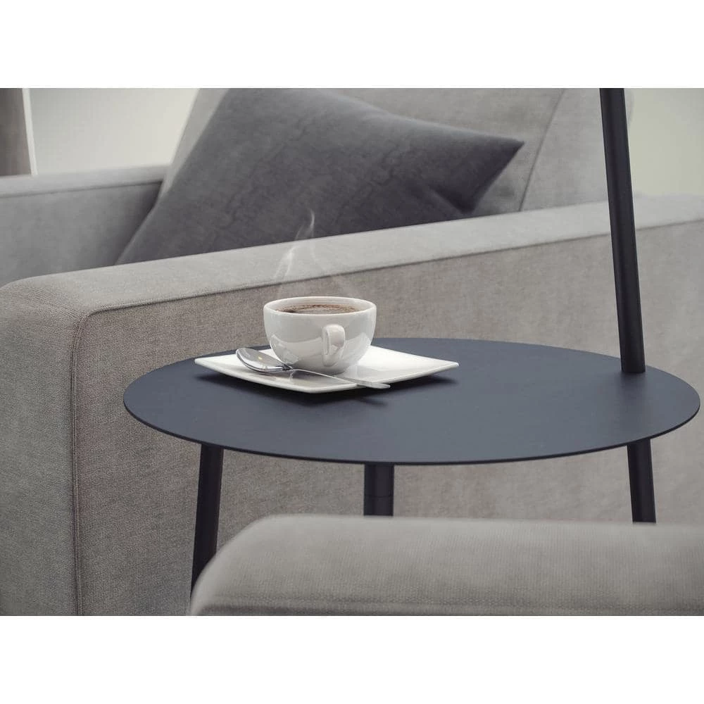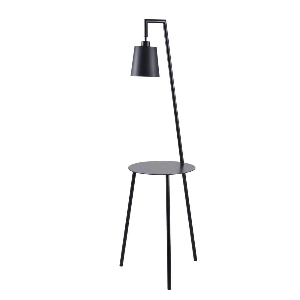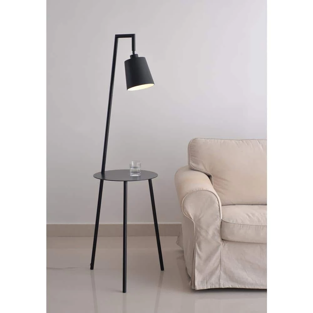 Functionality and sleek, sexy style combine to form this ultra-modern statement-piece. A bold black finish covers the tripod-style base of this lamp and tray table combination from the swiveled shade to the tripod base. Direct the swiveled shade downward to shed light on the accents you carefully place on the generously sized built-in tray perhaps a small terrarium with your favorite succulents, or a treasured photo of your family’s furbaby or swivel the light outward towards your cozy high-backed chair to use as a reading light. This floor lamp is perfect for packing bold, modern style into your minimalist Scandinavian-style home, combining both directional task lighting with an end table to create the ultimate functional 2-in-1 accent light.