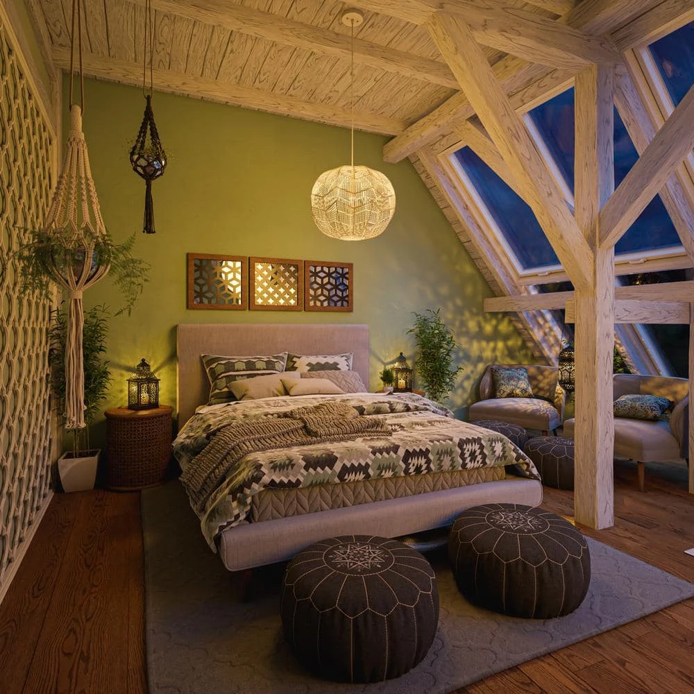 - Vaulted and sloped ceiling compatible