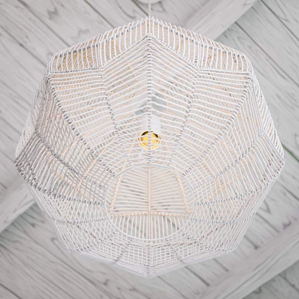 Bold, boho and beautiful, this 1 light pendant features a white woven rattan and a bright, atmospheric glow from your choice of vintage-style Edison bulb. Perfect for those looking to bridge the gap between light and airy minimalist style and casual natural modern looks, this pendant serves as a dazzling centerpiece above kitchen islands, dining rooms and living spaces.