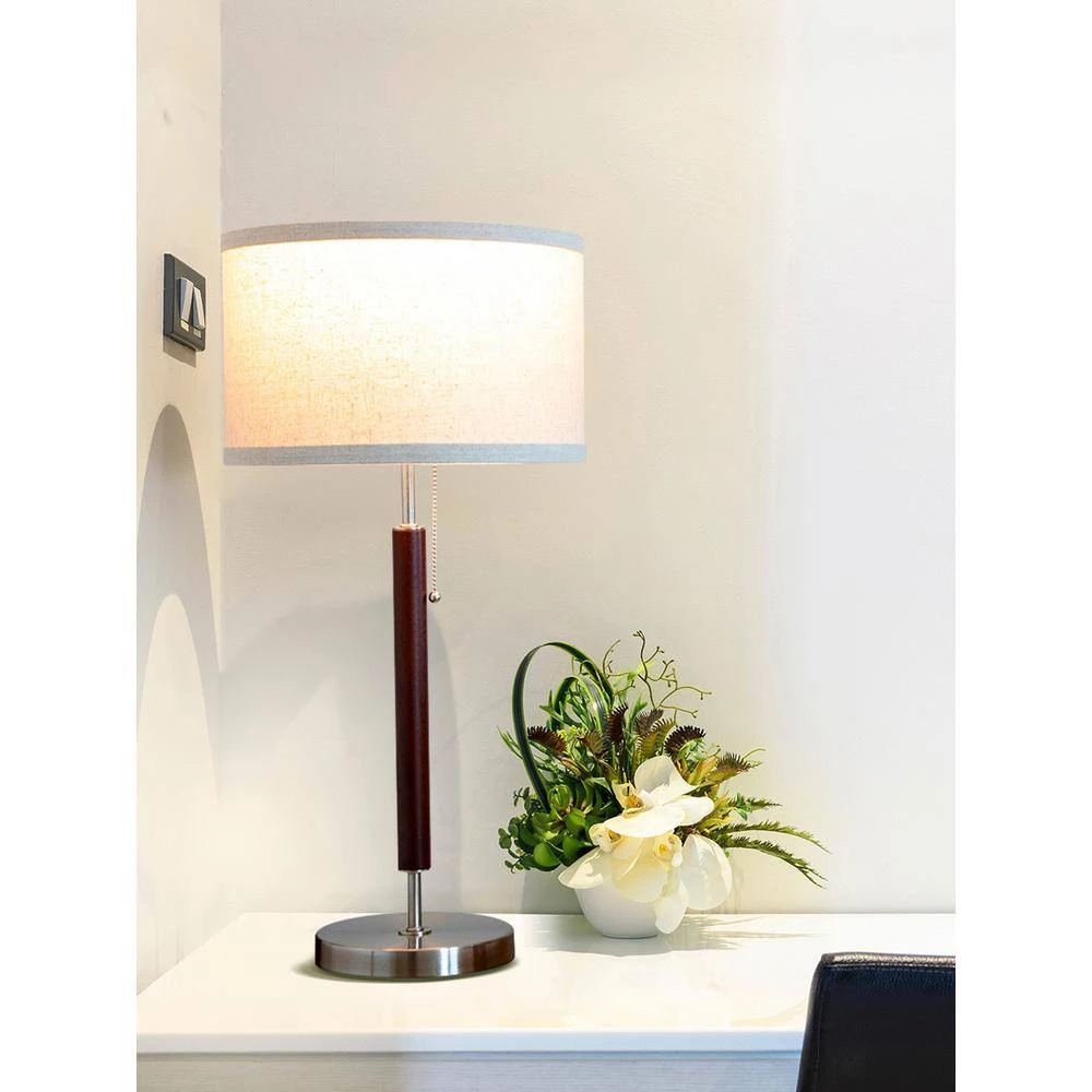 The Carter table lamp adds a touch of elegance to your home or office. The walnut eucalyptus wood finish, neutral linen lamp head, and silver accents blend perfectly on this modern floor lamp. Excellent addition to any bedroom, office, or studio!