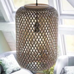 Cambridge 5-Light Weathered White Finish with Distressed Black Arms Pendant by Manor Brook
