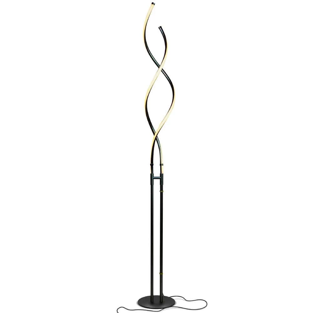- The Embrace stands between 40-60″ tall and includes an 8″ diameter heavy base so it won’t topple over. The twisting fixture lets the light shine out from any direction so that the lamp can be placed just about anywhere in the room.