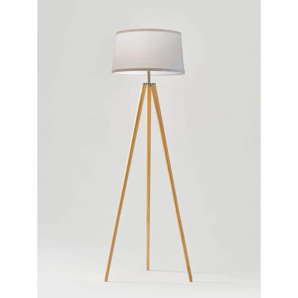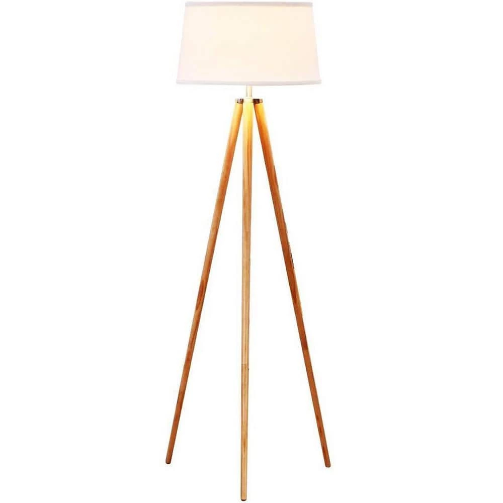 - A stylish mid-century modern wooden tripod lamp that’s sure to suit many styles, including art deco and upscale rustic, with its birch-toned wooden legs and cream white lamp shade.