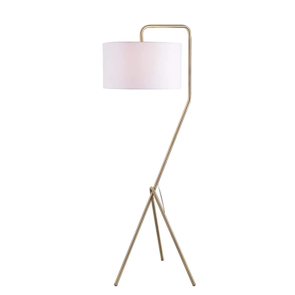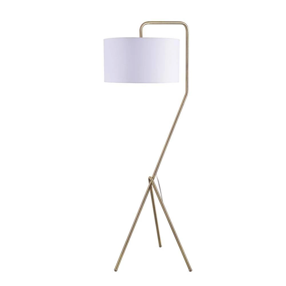 Combining retro Mid Century Modern style and contemporary glam charm is effortless with this grasshopper-inspired floor lamp. Pairing a mid century profile with a crisp contemporary drum shade, this floor lamp encapsulates high style with sleek functionality. The tripod base adds style and stability to the vintage grasshopper-like form, a look inspired by the famous Swedish-modern style of interior design found in California in the late 1940s. Updated with the clean lines of the drum style shade, this floor lamp provides plenty of bright, room-filling illumination from beside your carefully curated mid century high backed accent chairs, exuding high fashion style in your contemporary luxe living room or Scandinavian minimalist bedroom. The unique arched profile also lends itself well to small living spaces, with the shade reaching over sofas and chairs to act as an excellent reading light in your urban industrial or minimalist apartment living room.