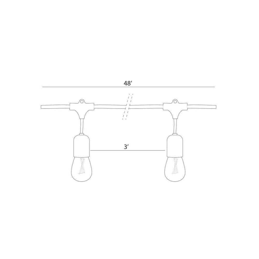 - The 48′ long string lights feature 15 2-Watt bulbs, spaced 3 feet apart, with the capacity to connect up to 8 strands.