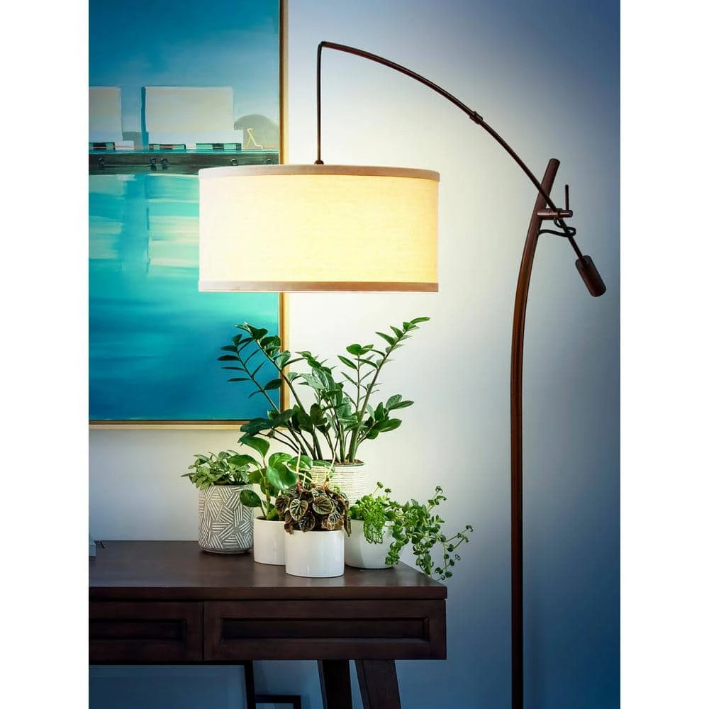 The Grayson is a one-of-a-kind lamp with a thin body, modern curved light, and a natural hanging lampshade. Liven up any space with this sophisticated LED lamp. With its warm and cozy look, the Grayson is sure to be a perfect fit for any bedroom, office, or study!