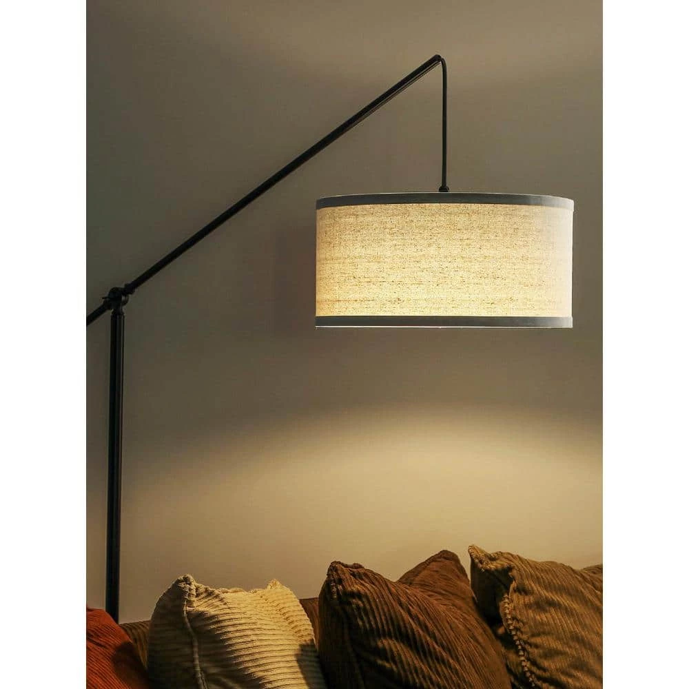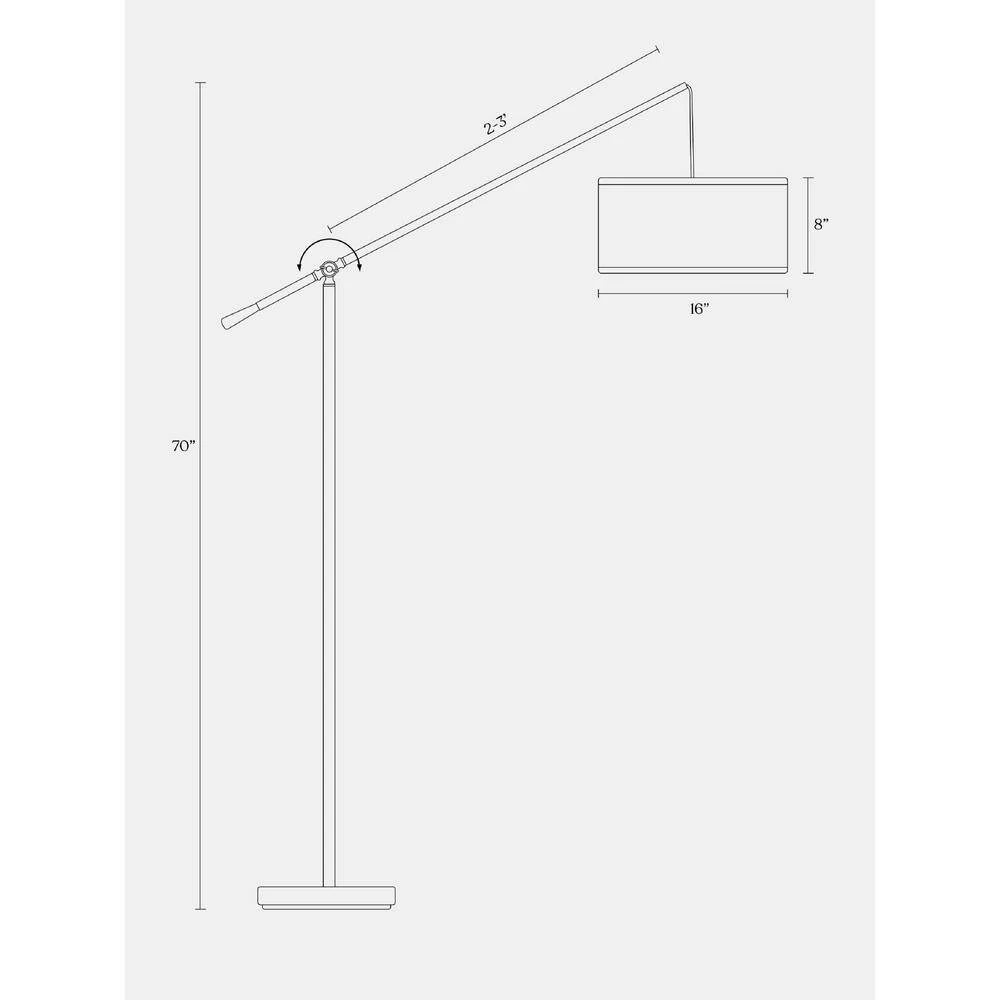 - Standing 70″ tall, The Hudson features a linen shade 16″ in diameter and 8″ long and a sturdy weighted base that prevents the light from tipping over.