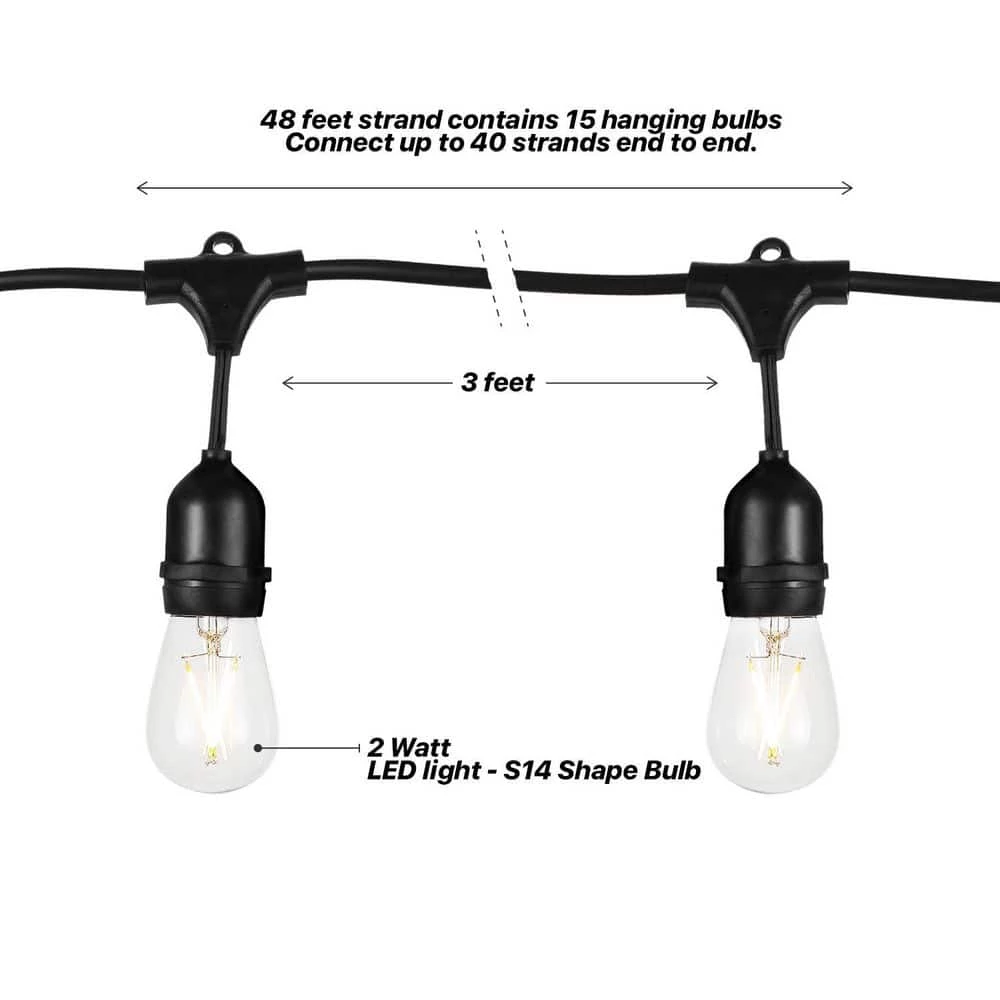 The life of the party doesn’t have to move inside when the sun goes down. You can keep the party alive in the cool summer night air with the 3-pack of Brightech Ambience Pro Edison White LED Waterproof Outdoor String Lights. You can man the grill, play some games and mingle with your friends into the dark of the night, as these outdoor string lights will twinkle and shine all night long. You don’t have to worry about taking the lights down when inclement weather is rolling in either. The lights will shine on through rain, sleet and snow. This set of LED string lights is 48 ft. L, with 15 bulbs every 3 ft. Simply plug these 2-Watt bulbs into a 110-Volt power source. Bring the warm and cozy feel of an Italian cafe’s patio to your backyard, porch, gazebo and more with 3-pack of Brightech Ambience Pro Edison White LED Waterproof Outdoor String Lights.