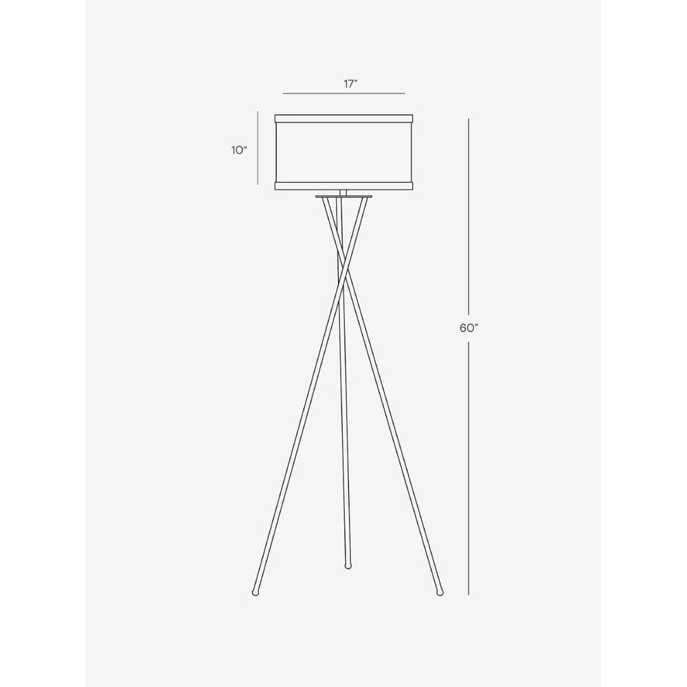 - Standing at 60″ tall, The Jaxon features a beautiful linen lampshade that’s 17″ in diameter and 10″ long, with sturdy legs that have 24 inches of space in between them, and a cord over 6″ long,