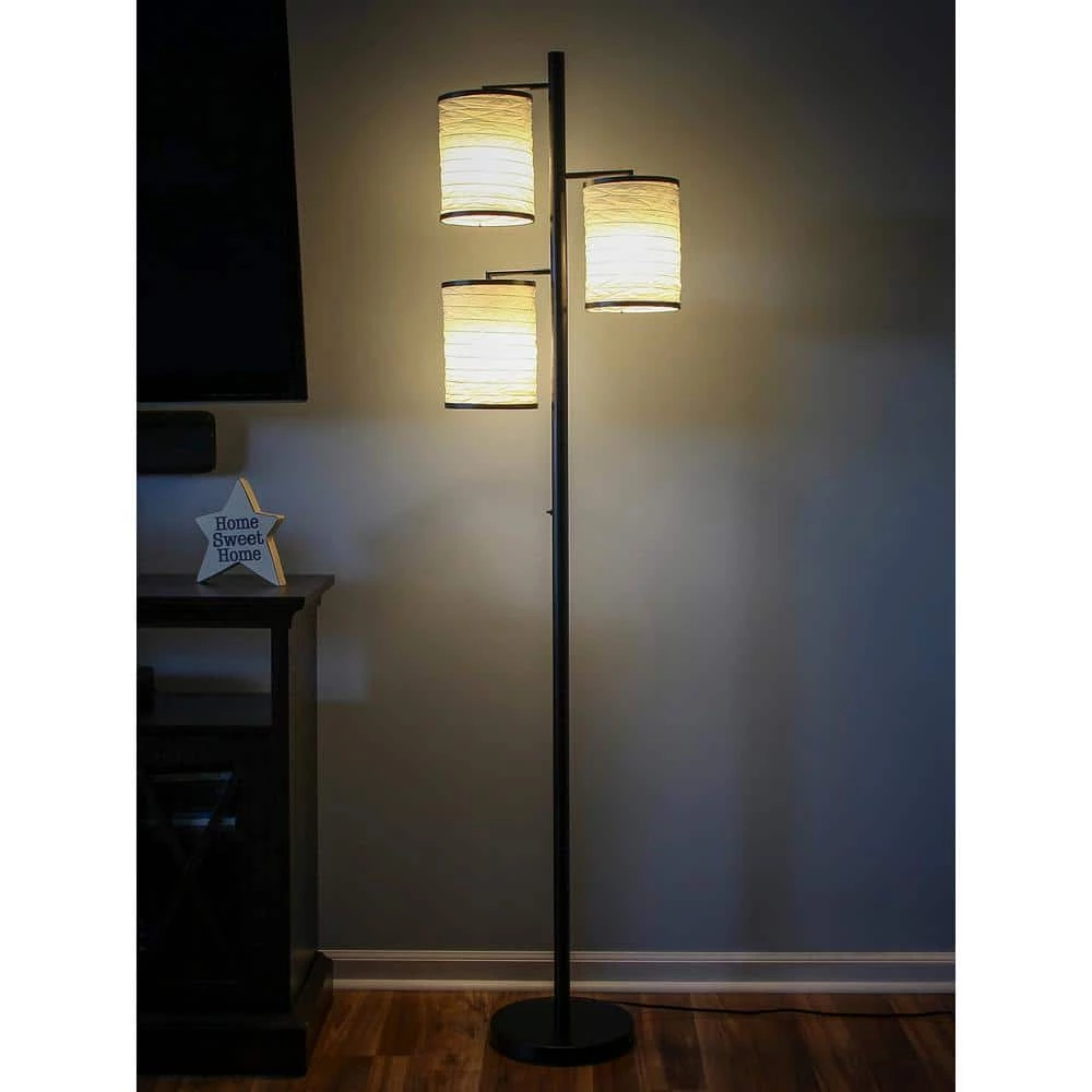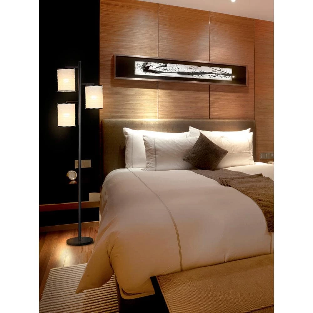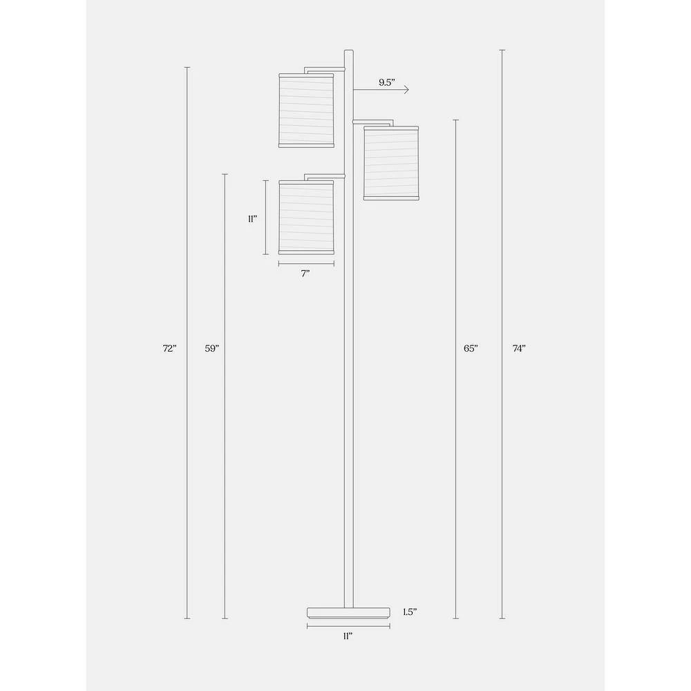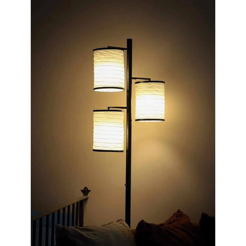- Standing 61″ tall, The Liam features Japanese-inspired lampshades 7″ in diameter and 11″ long, along with a heavy weighted base 11″ in diameter to avoid accidental tipping.