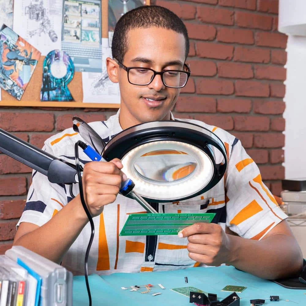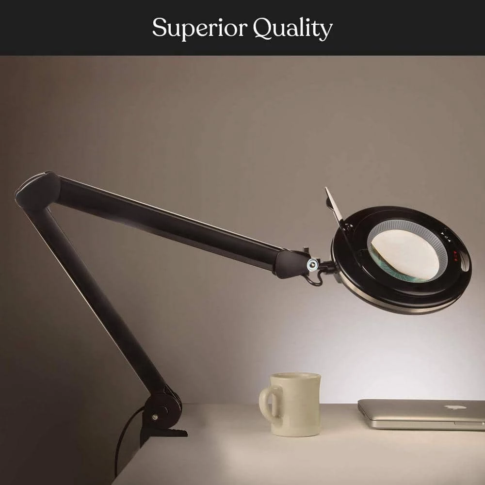Best Led Magnifier Lamp For Reading and Close Work. Comfortable, Unlike Magnifying Glasses/Headsets: Enjoy newspapers and books even with vision problems such as ageing eyes or macular degeneration. The 3 in. lens magnifies up to 225% (2.25X), with things in focus 8 in. away. Avoid strapping painful headsets or heavy, uncomfortable and awkward magnifying glasses, when at your work bench/table.
