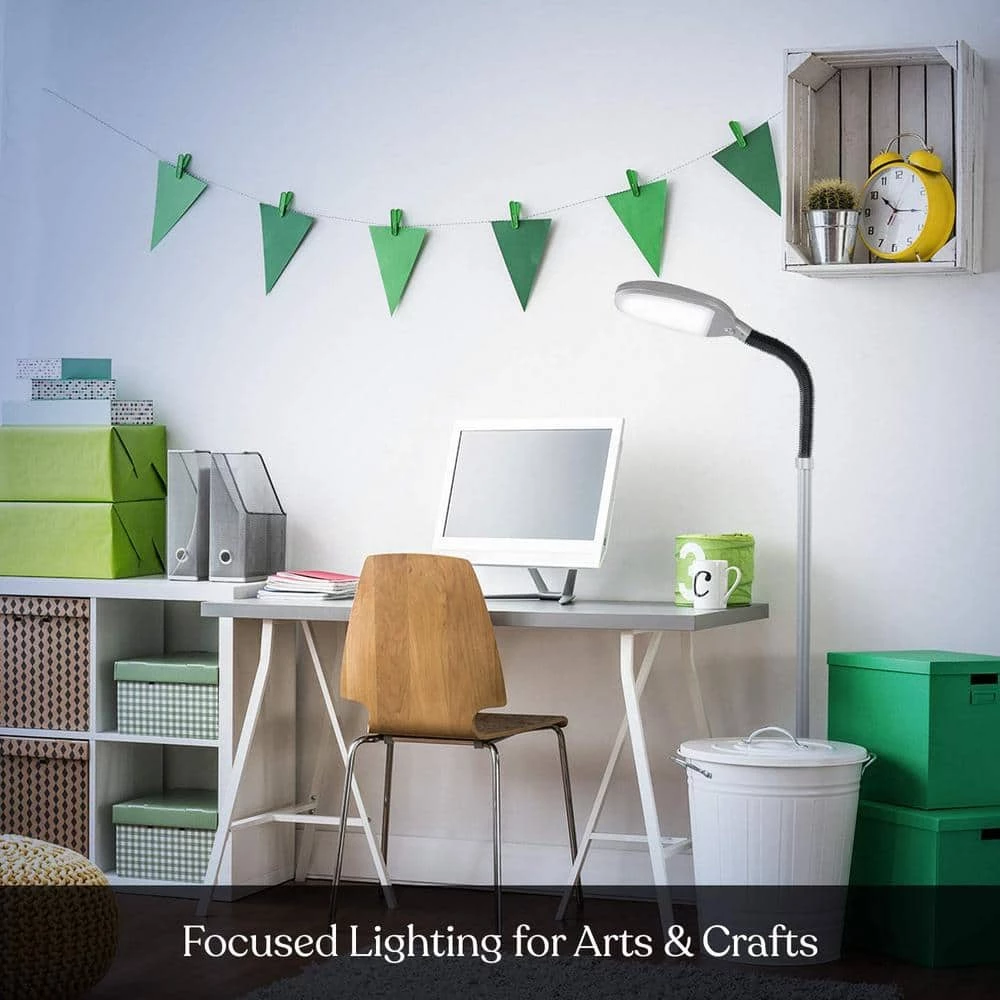 - Modern office floor lamp for your desk or armchair with adjustable gooseneck: carry out your work easily without installing expensive overhead lights, adjust the gooseneck arm to point the light right where you need it, e.g. on your desk