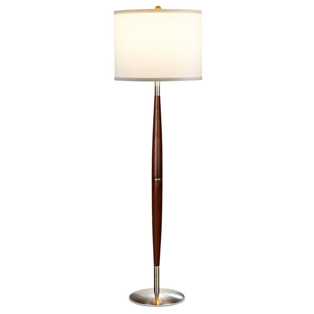 - Standing 61 in. tall, the Lucas weighs about 14 lbs., features a neutral lampshade that’s 16 in. Dia, and 11 in. L, along with a metal base 11 in. Dia,