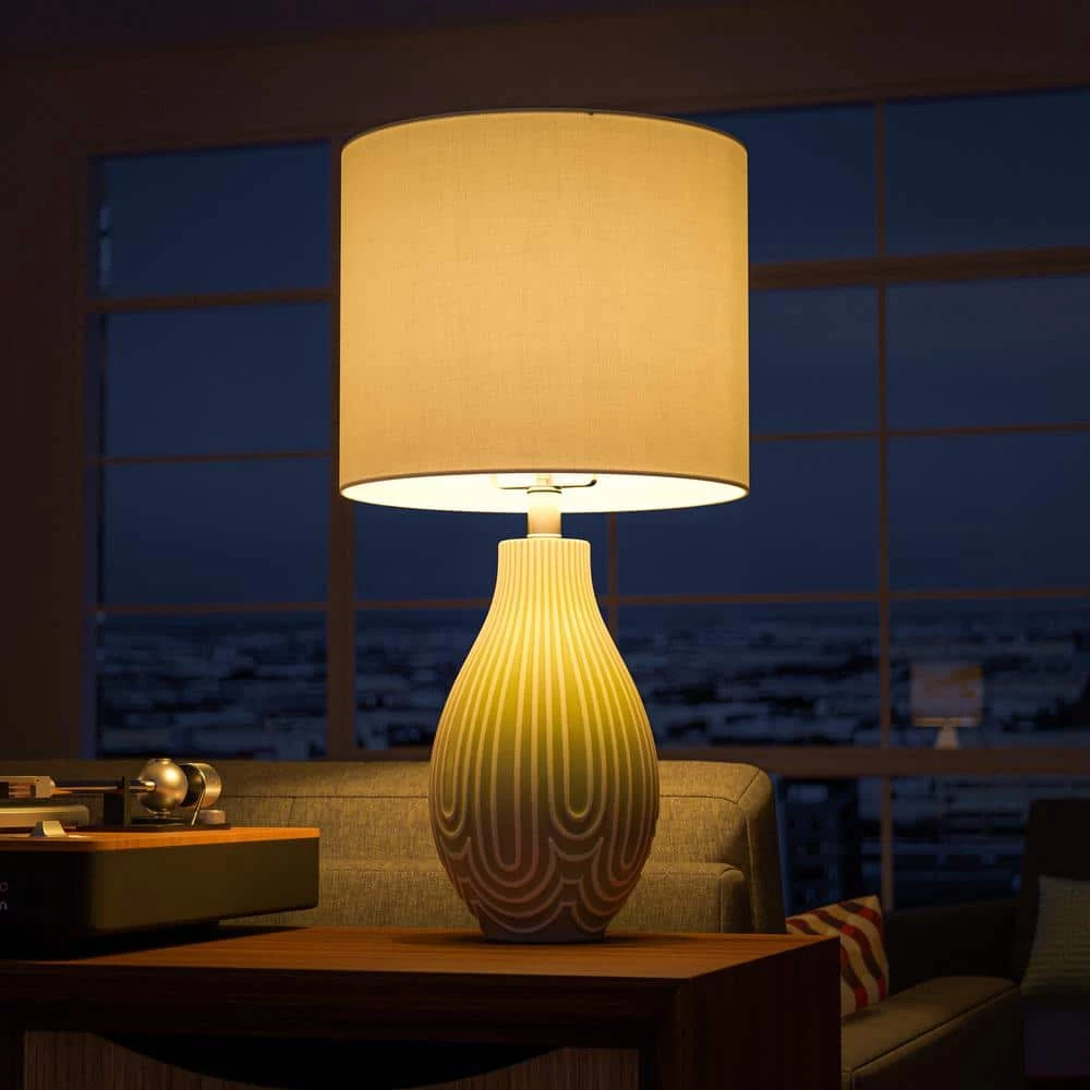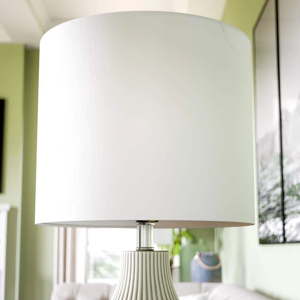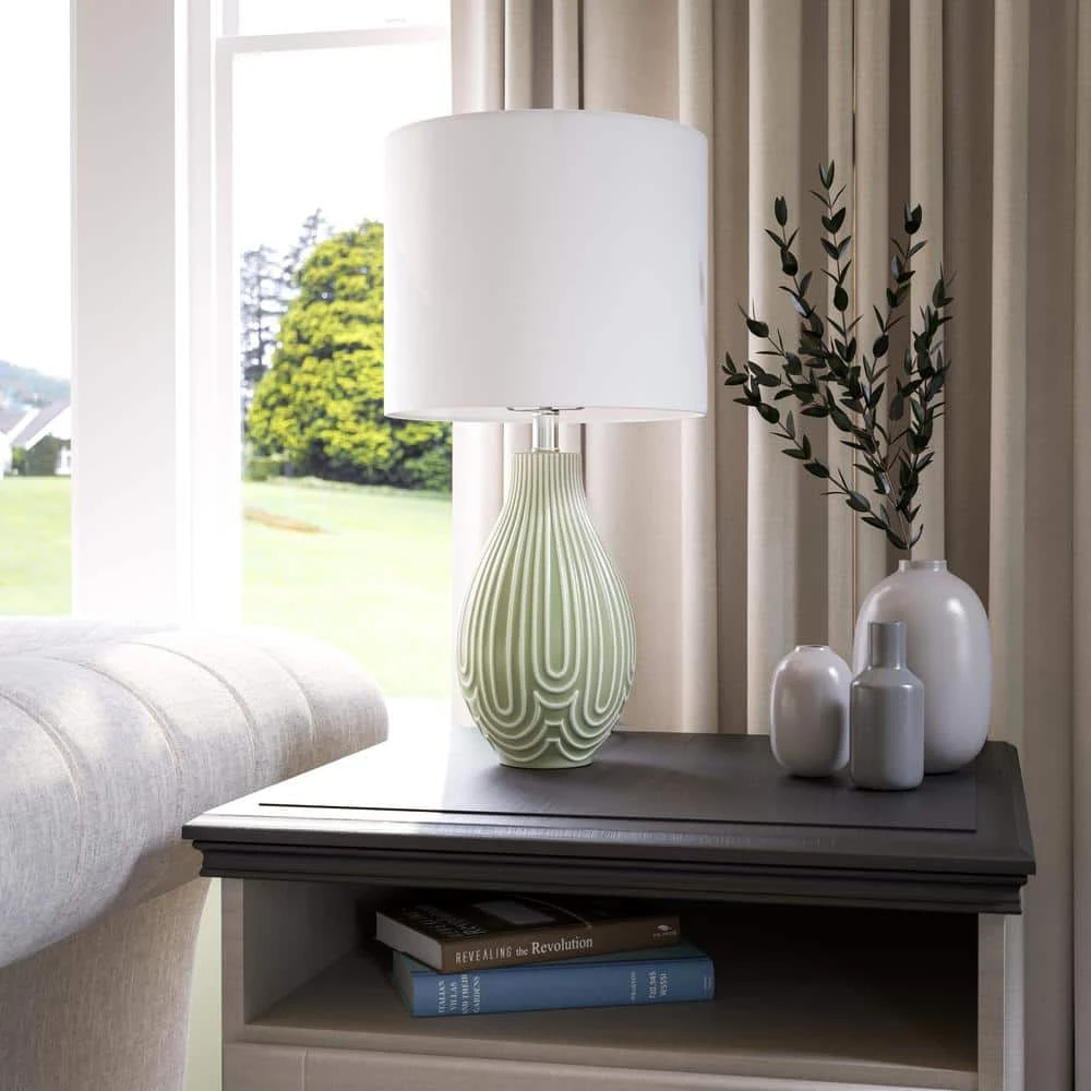 A soft, muted sage green glazed ceramic body and a contrasting crisp white shade adds a touch of calming natural color to your urban boho traditional living room. The 3-Way Socket Switch allows you to choose from high, medium and low light to swap from a bright, focused glow ideal for lighting a whole room or a gentle warm light for reading at night. This ceramic accent lamp is expertly suited to match your chalk painted end tables, white night stands or home office desk.