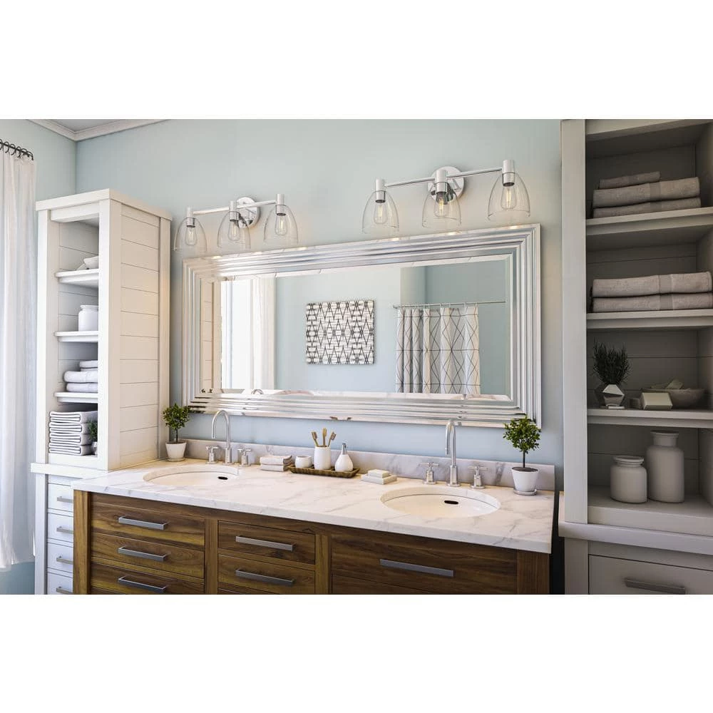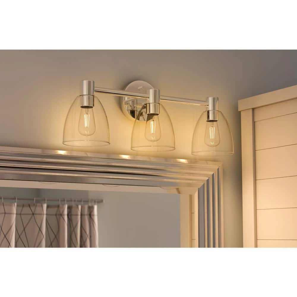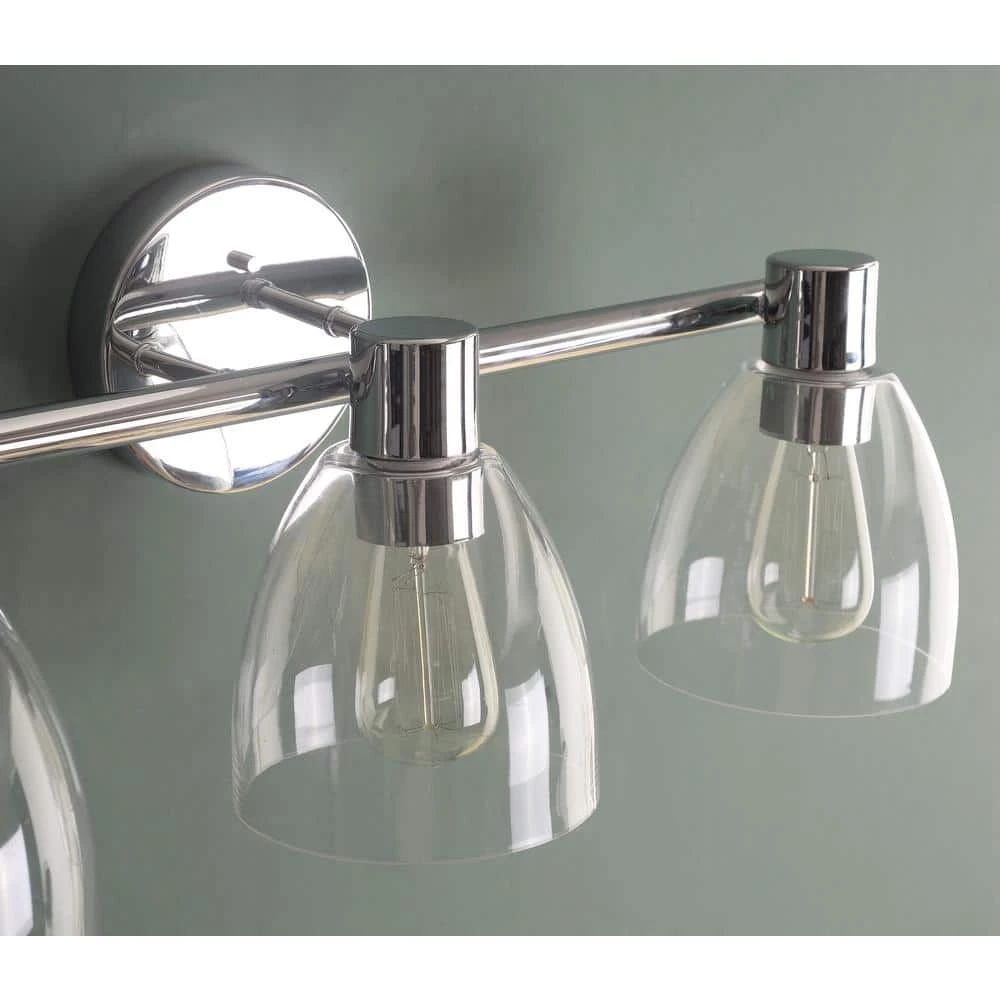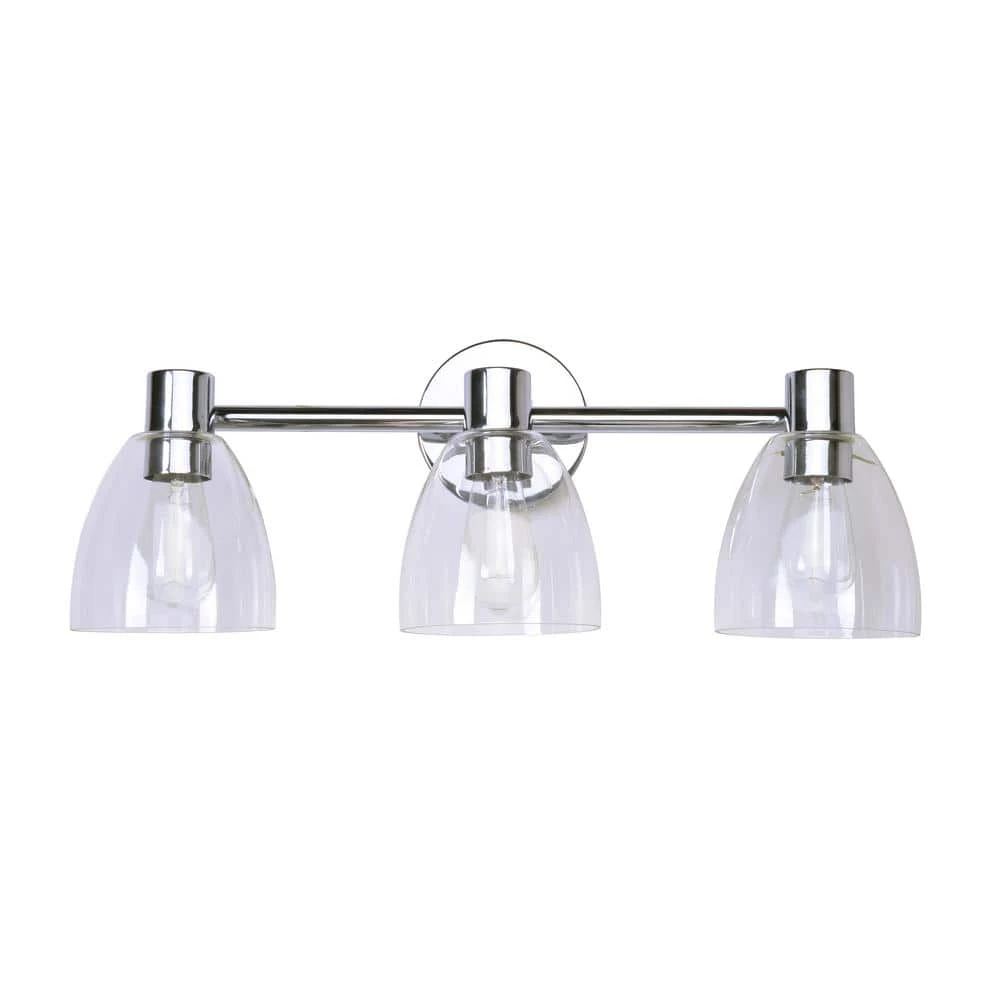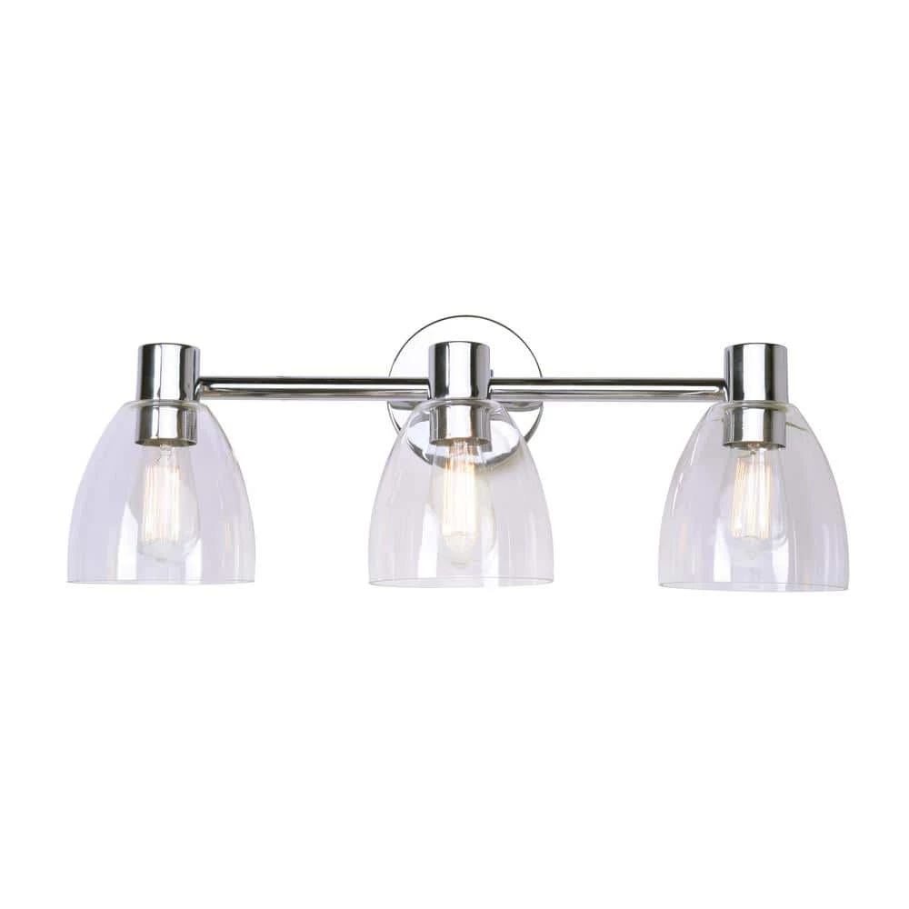 This minimalist vanity light packs a massive amount of style. Harnessing the raw inspiration of industrial design, this versatile fixture provides plenty of bright illumination for you to kickstart your morning routine. This vanity light features 3 crystal clear glass shades paired with a bright and lustrous chrome finish, excellent for ramping up the stripped-down industrial design notes. This versatile design complements a wide range of home decor, perfect for creating a spa-like contemporary minimalist or a coastal-industrial master bathroom.