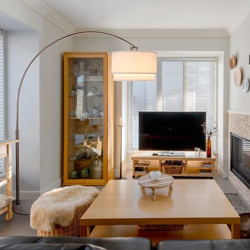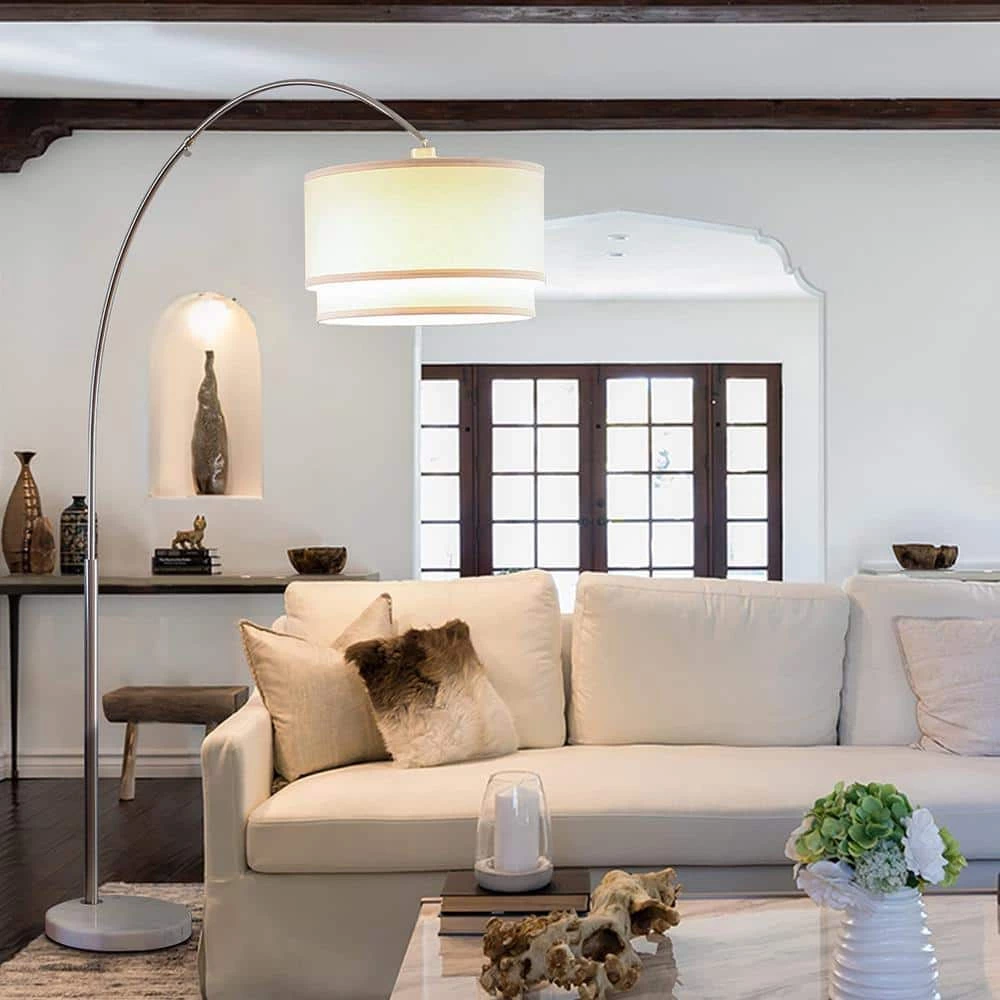 - Stable, beside the sofa arched reading light for living rooms: this is a great lamp to stand up over the living or family room sectional, the low 1.5 in. marble base slides easily under your couch and you can telescope the adjustable arc up to 44 in. from the pole, enjoy overhead light for reading, knitting and other hobbies, the 15 in. Dia heavy base also makes it wobble-free, ie safe around kids and pets, the tall maximum height of 81 in. fills space in rooms with high ceilings