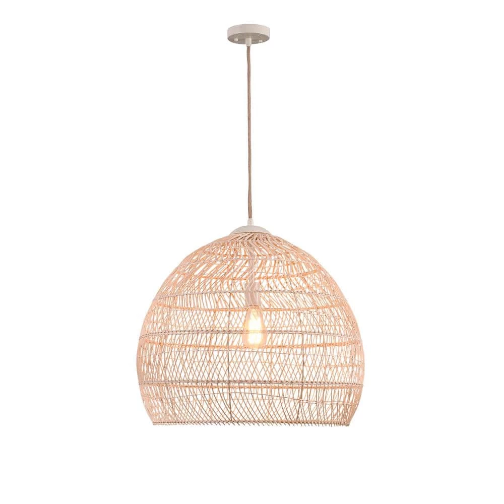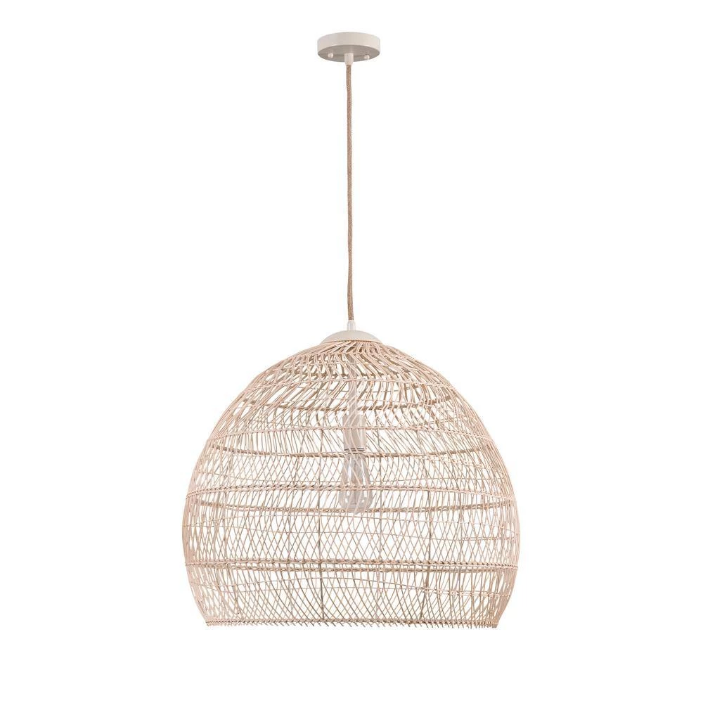 With a woven wavy pattern, this natural modern 1 light pendant packs a huge punch of casual boho style. Naturally finished rattan is woven in a soft, curved wavy open weave pattern to showcase your choice of bulb within. Perfect for your vaulted or sloped ceiling dining rooms, entryways or living rooms, this large pendant expertly coordinates with your tropical coastal decor and casual boho textures.