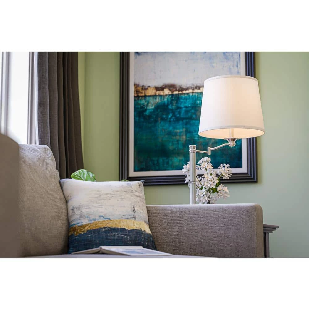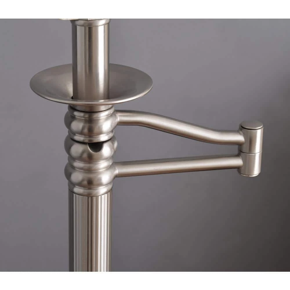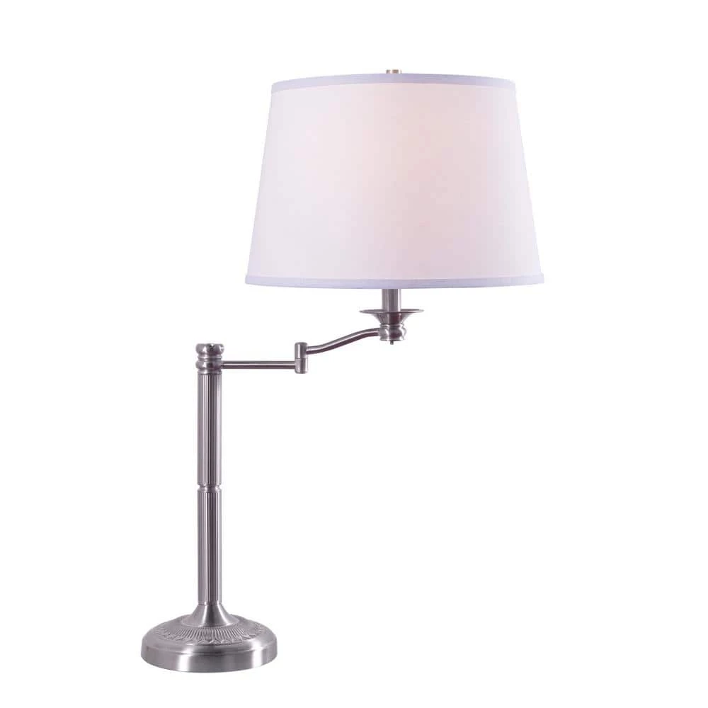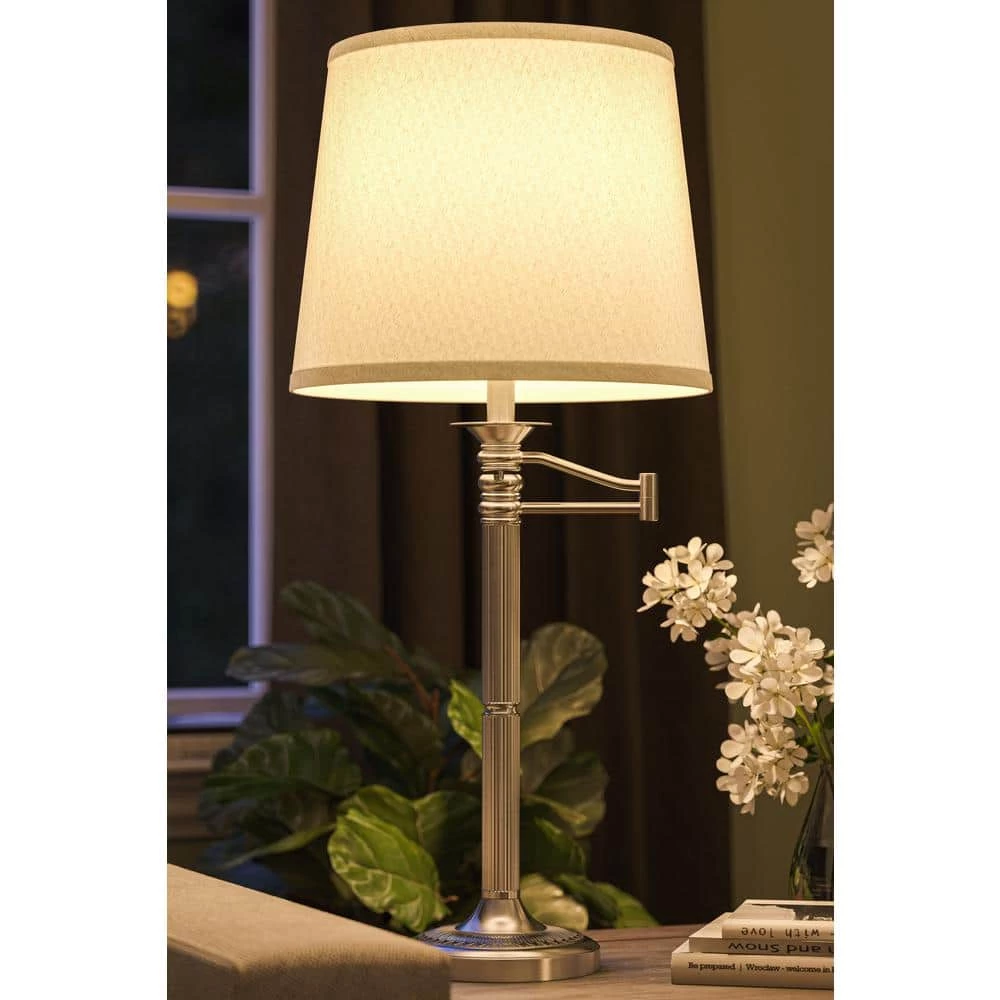 Relax and unwind in bed with a good novel – this classic transitional lamp’s swing arm allows you to control the placement of the lighting element to give you excellent task lighting and soft illumination. The traditional receded candlestick base is brought up to date by a crisp white tapered drum shade and a brushed steel finish for a piece that’s truly transitional. works with Amazon Alexa compatible smart plugs for on/off voice activated operation. (Amazon Alexa and smart plugs sold separately) Equally at home on top of Mid-Century Modern end tables and traditional nightstands, this table lamp will bring just the right amount of industrial charm to your home decor.