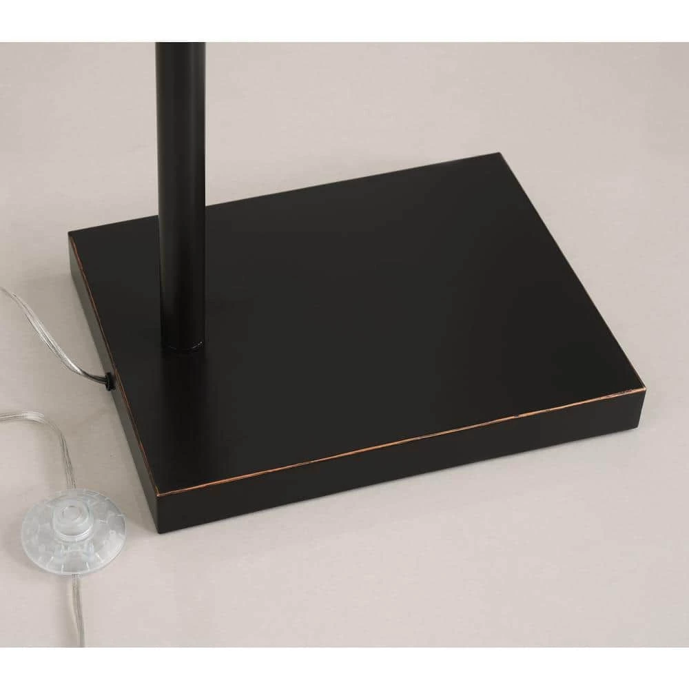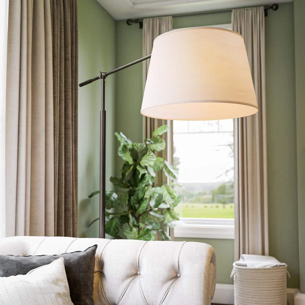 Fully customize your transitional living room lighting with this boom arm adjustable floor lamp. A tan wheat-colored fabric shade is held aloft by a slender oil rubbed bronze frame with a fully adjustable boom arm. Simply raise or lower the lever to either create focused downlighting ideal for reading or diffused up lighting for illuminating the entire room. A convenient foot switch and tall height further adds to the convenience of this traditional masterpiece.