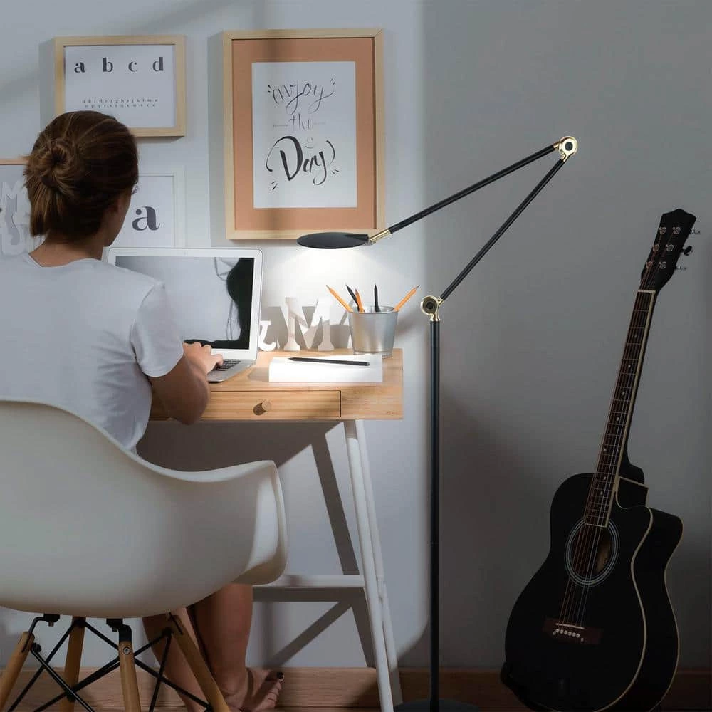 - 2 in 1 use as standing pole lamp or table/desk lamp with adjustable lever arm adjustable: add or remove the 31 in. standing leg to convert the sage 2-in-1 from an upright, free standing lamp to an office desk lamp or nightstand light