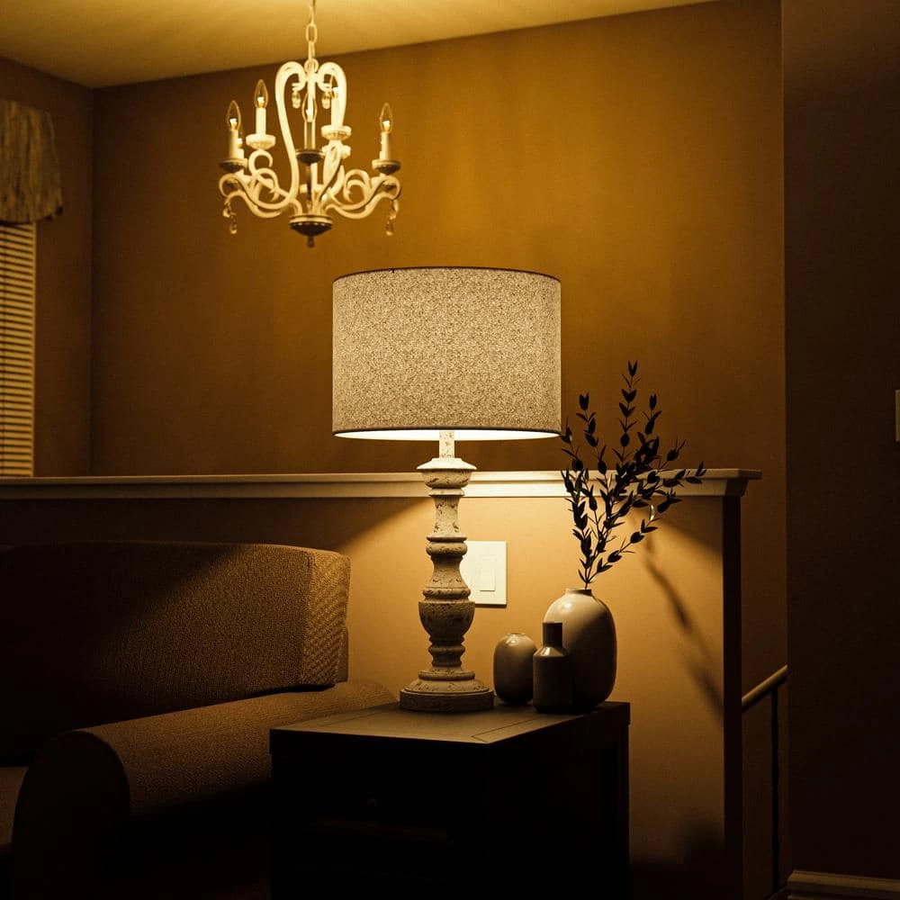 - Dark taupe fabric drum shade for gently diffused light