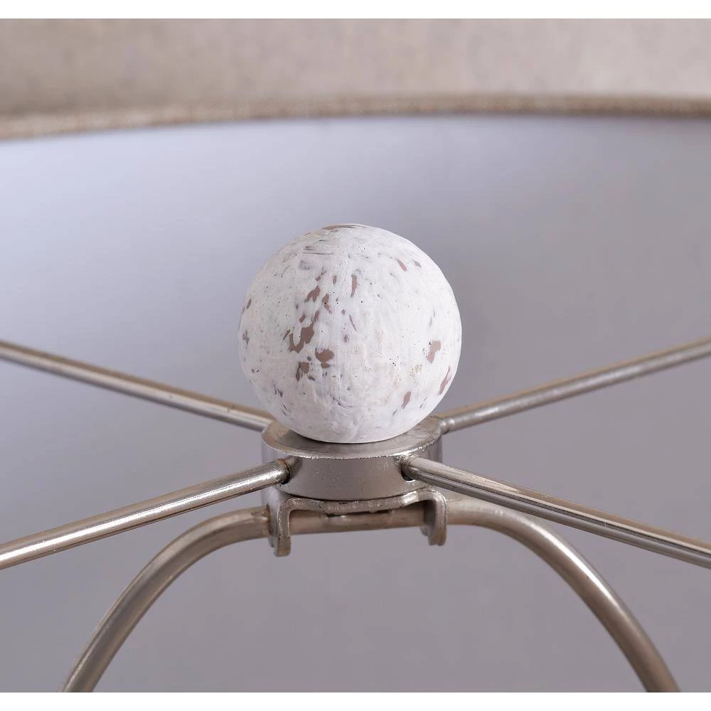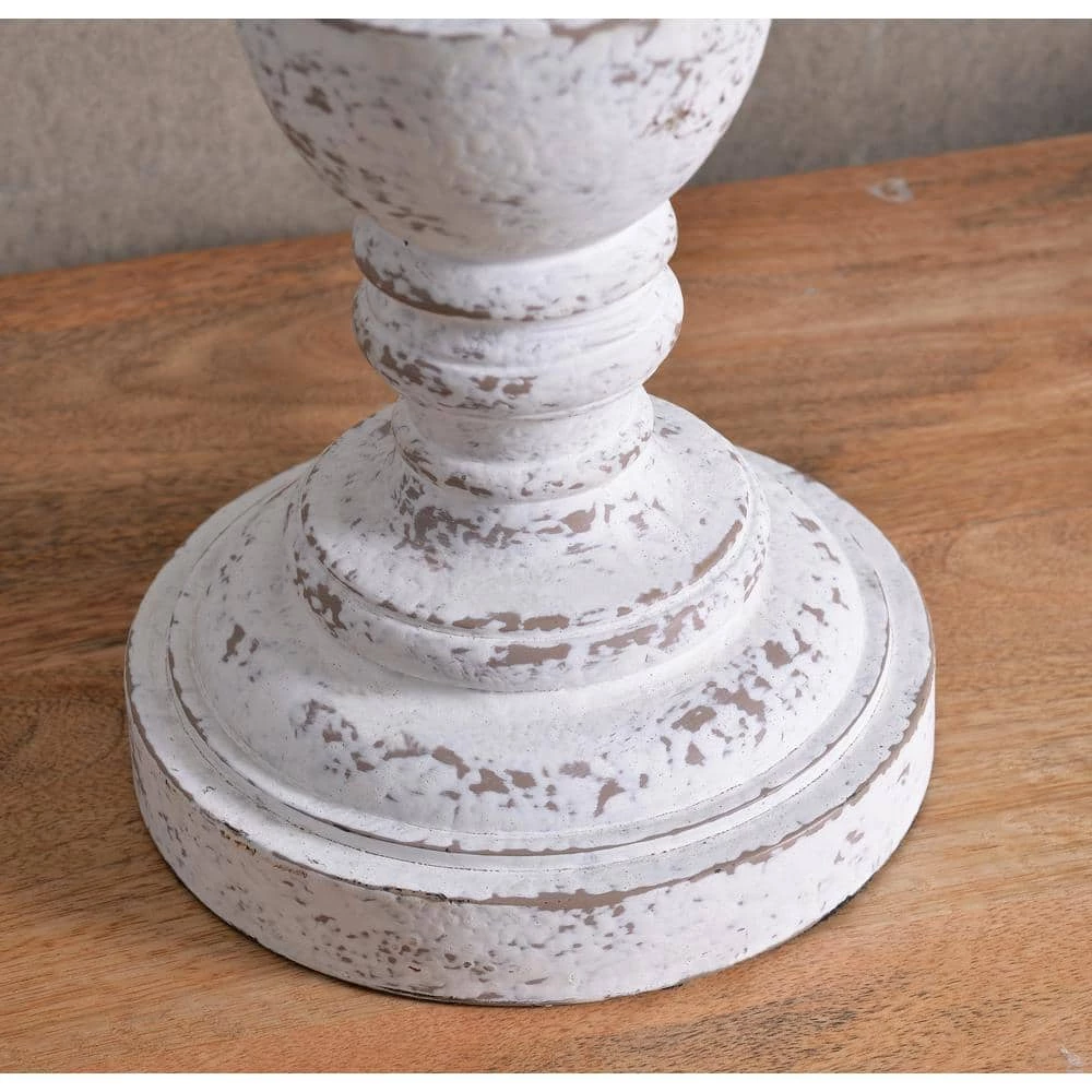 This rustic lamp features a curvy body that takes inspiration from classic farmhouse candle holders. The lamp comes in a hand-painted chalk white finish, giving a well-loved look to the piece. A large dark taupe fabric shade sits atop the lamp, bringing a warm touch to the light. With a small footprint, this lamp can bring a touch of modern farmhouse style to almost any part of your room – perfect for end tables, nightstands or console tables.