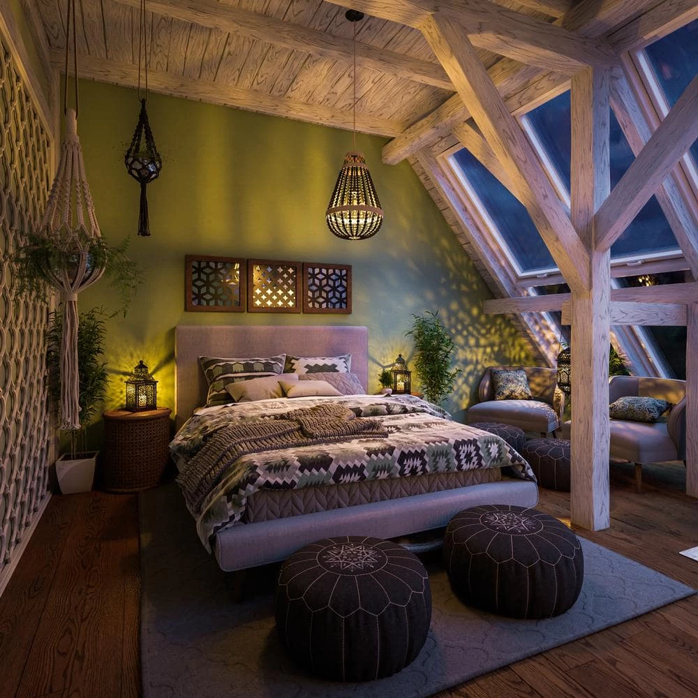 - Vaulted and sloped ceiling compatible