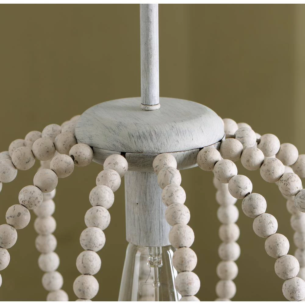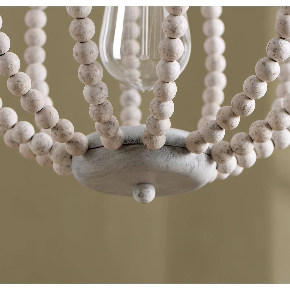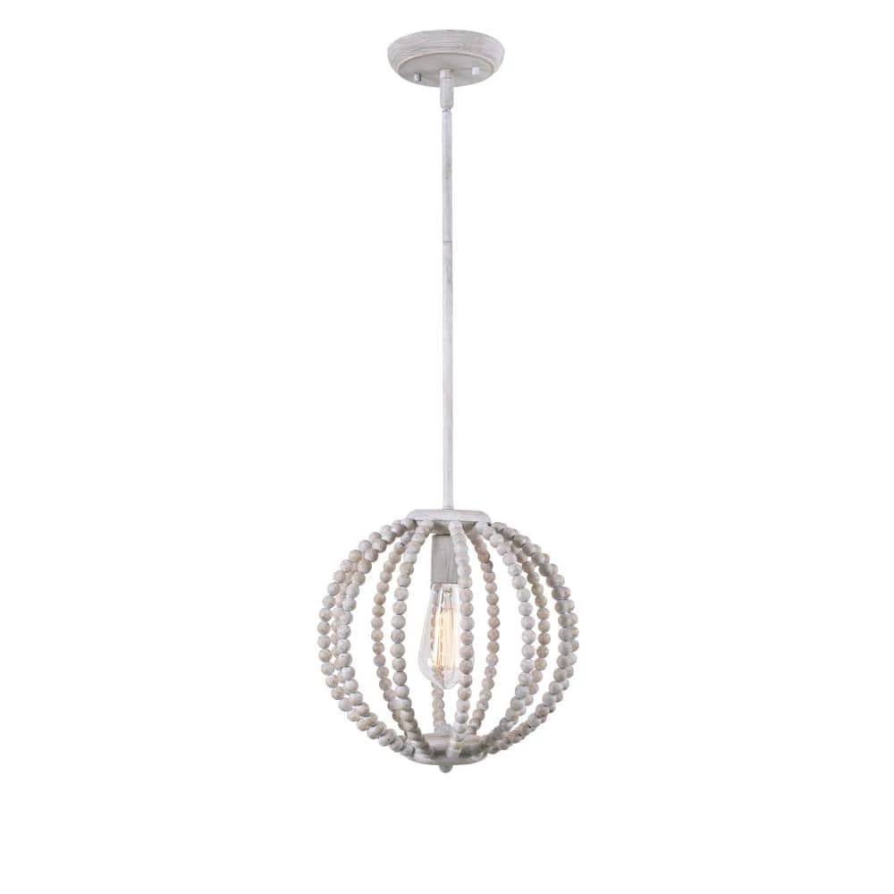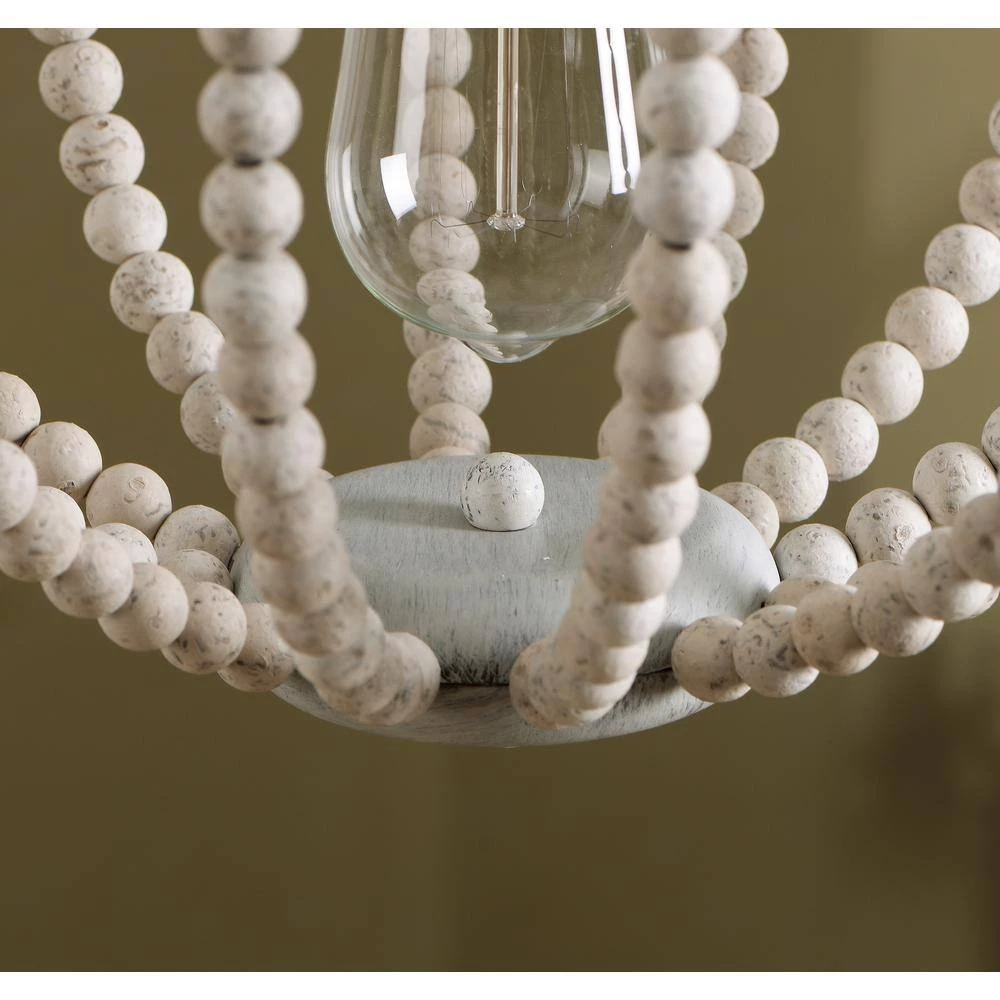 Strands of weathered white beads enclose a bright, warm light for a comfortably casual boho accent in your eclectic entryway. Whether your look is casual coastal or natural modern, the weathered white wood bead detailing adds a soft, distressed look to your home decor. This mini pendant is both vaulted and sloped ceiling compatible, allowing you to add soft organic charm to your entryways, foyers, living rooms, kitchens, dining rooms, or breakfast bars. To create a warm, vintage glow, use a compatible LED Edison bulb.