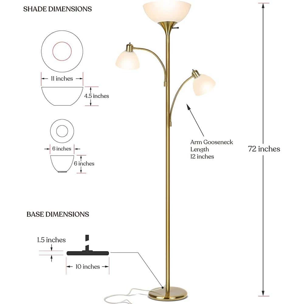 - 3 warm white LED bulbs included – high brightness without high power cost: this Brightech lamp includes 3 LED bulbs: 16-Watt / 1600 Lumens, 2 x 9.5-Watt / 800 Lumens, comparable to 100-Watt and 2 x 60-Watt incandescent, saving 85% on your electric bill (220-Watt vs 35-Watt)