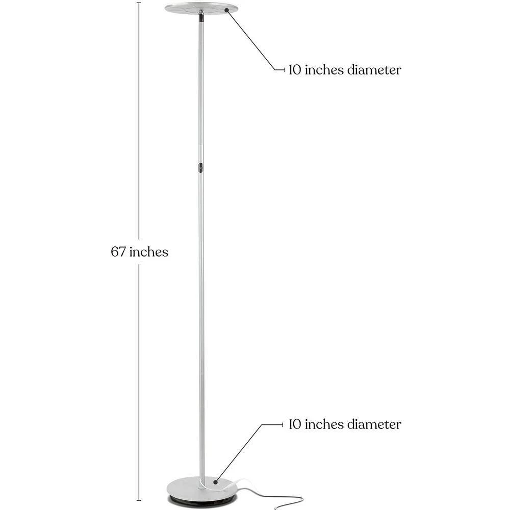 - 67 in. tall with heavy base- sturdy, stable and safe design- Brightech designed the sky 30 flux torchiere floor lamp with safety in mind, this LED lamp produces no heat so that it is easy to reposition the adjustable rotating head