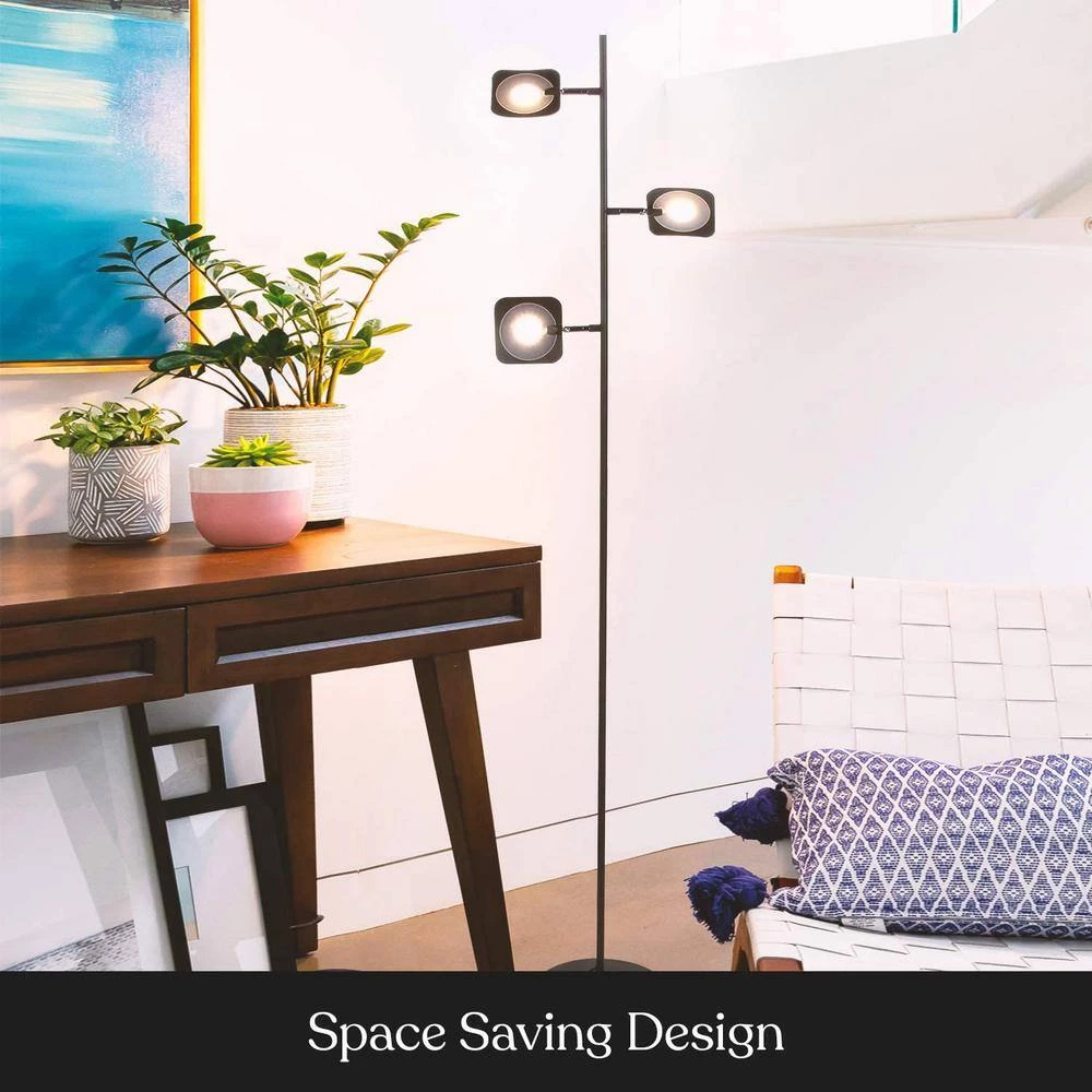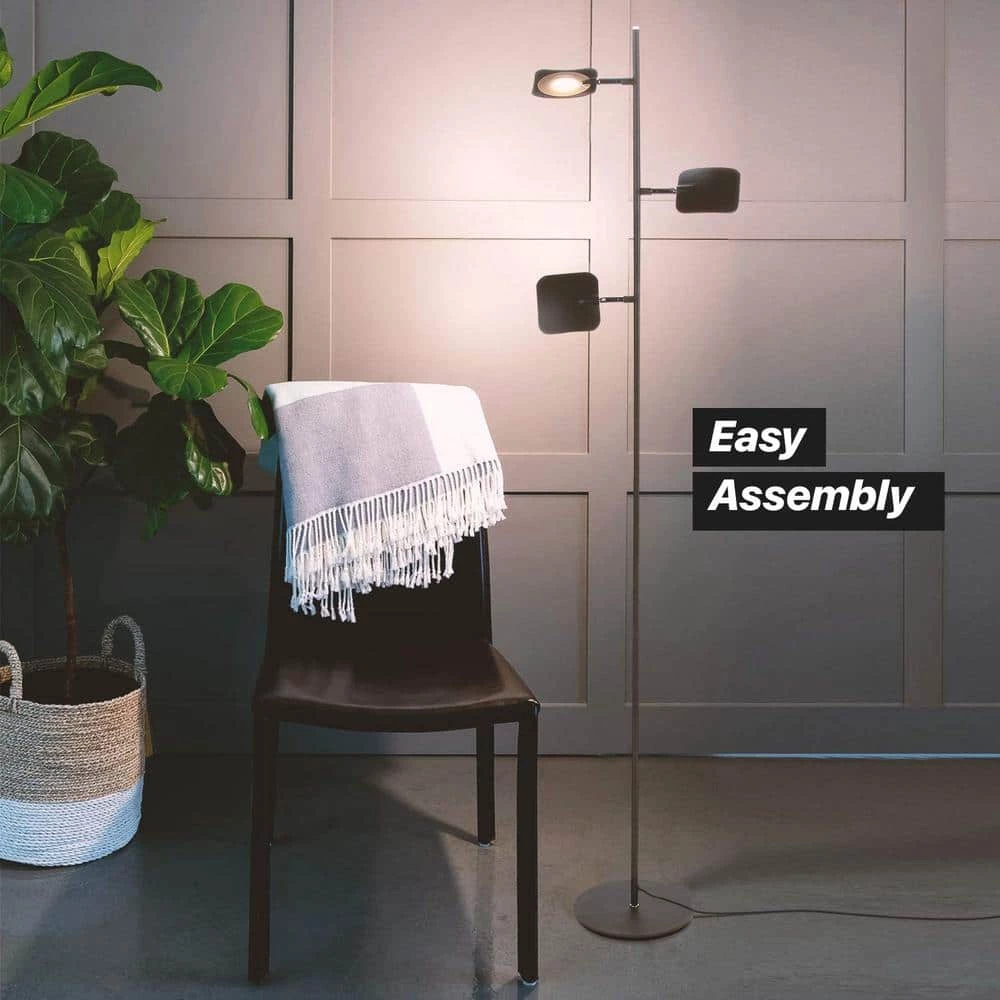 - 360° direction adjustable rotating lights, dimmable – the Brightech tree has 3 omnidirectional LED fixtures that pivot 360°, swing the panels down for reading or crafts -eg knitting, sewing, jewelry design and electric repair- or rotate up to reflect off the ceiling, brighten all corners of your room