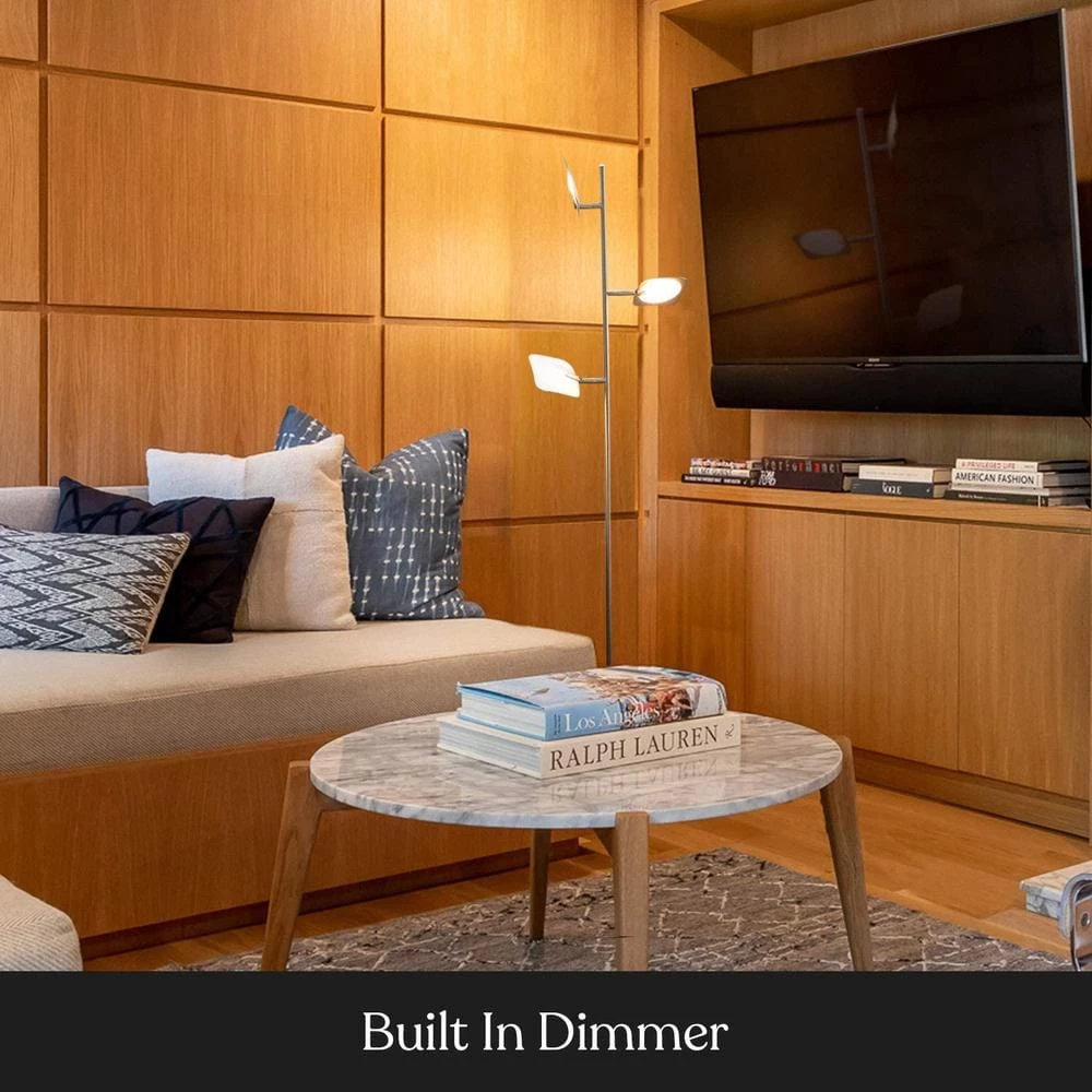 - 360° direction adjustable rotating lights, dimmable – the Brightech tree has 3 omnidirectional LED fixtures that pivot 360°, swing the panels down for reading or crafts -eg knitting, sewing, jewelry design and electric repair- or rotate up to reflect off the ceiling, brighten all corners of your room, diffusers on the panels keep the light soft on the eyes, use the built-in-dimmer to adjust brightness