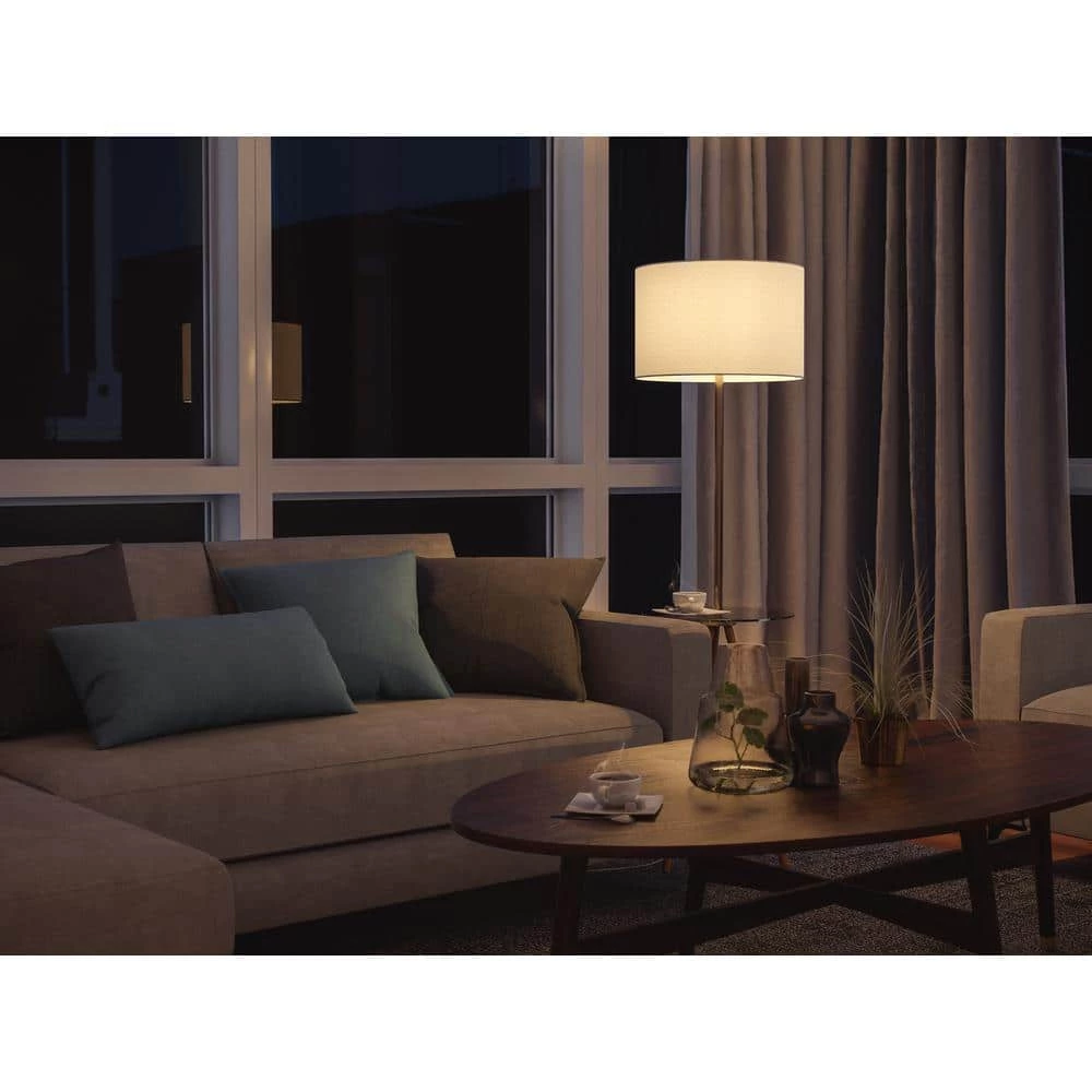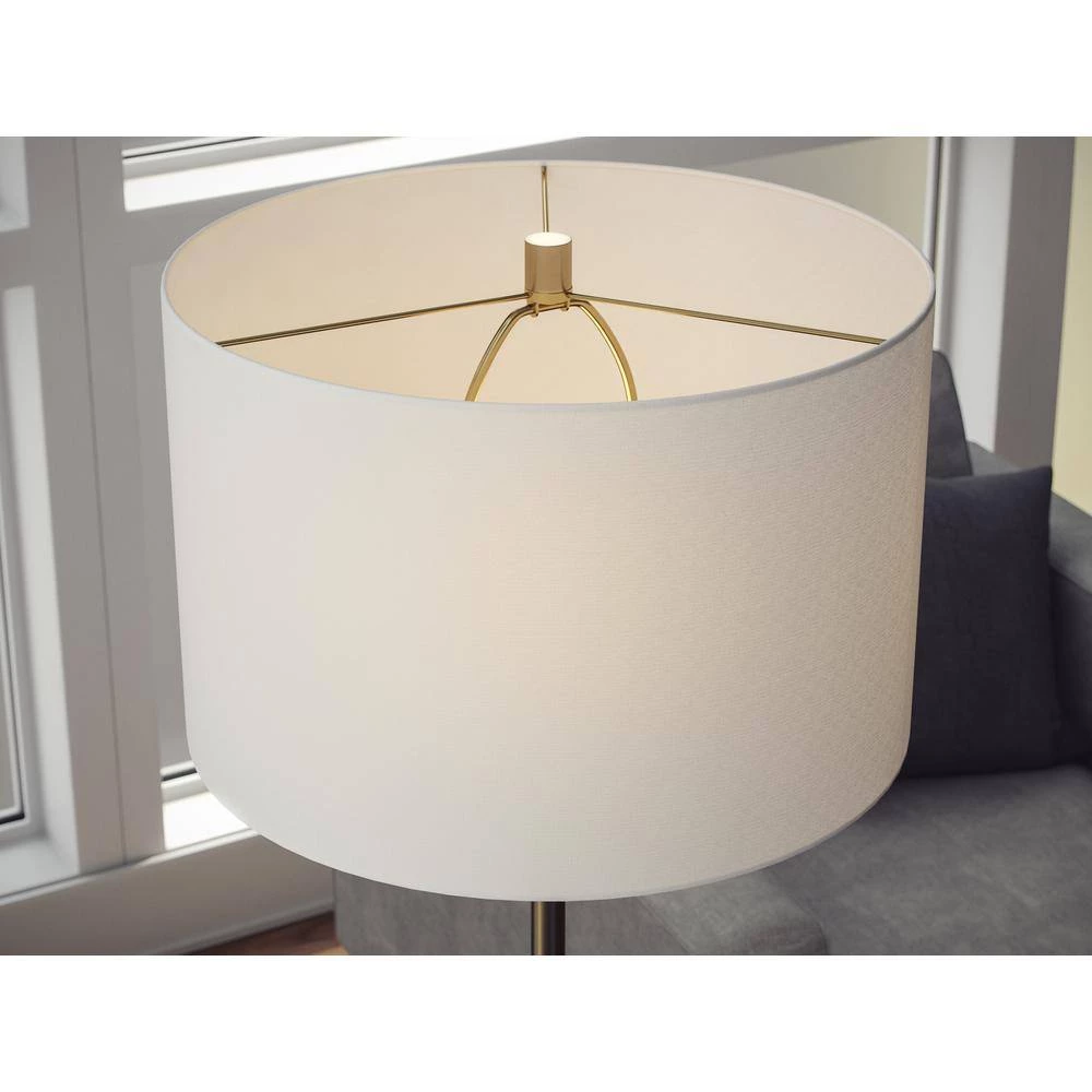 - Crisp white drum shade adds contemporary style and bright, room-filling illumination